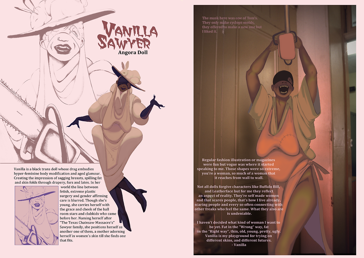 The success of RuPaul's Drag Race is a microcosm of this, at the expense of leaving its black, trans, and underground roots behind, betraying itself in order to better appeal to heteronormative audiences. It has gone on to define most people's understanding of drag, who can do drag, how they can do it, establishing good drag as that which is skinny, hyper feminine, white and expensive, everything the Horror Tropical characters oppose.