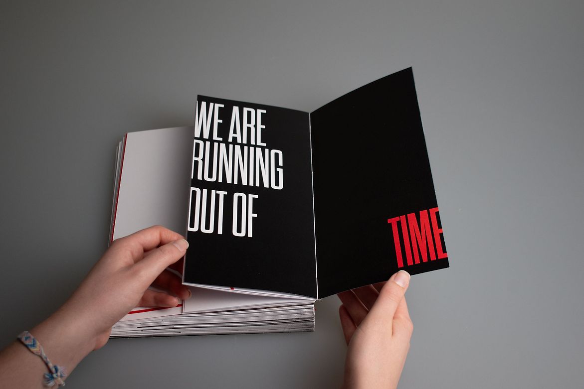 89 Seconds uses typography to evoke a sense of urgency and dread as we inch closer to Doomsday. It speaks directly to the reader: Immediate action is needed, we are running out of time.