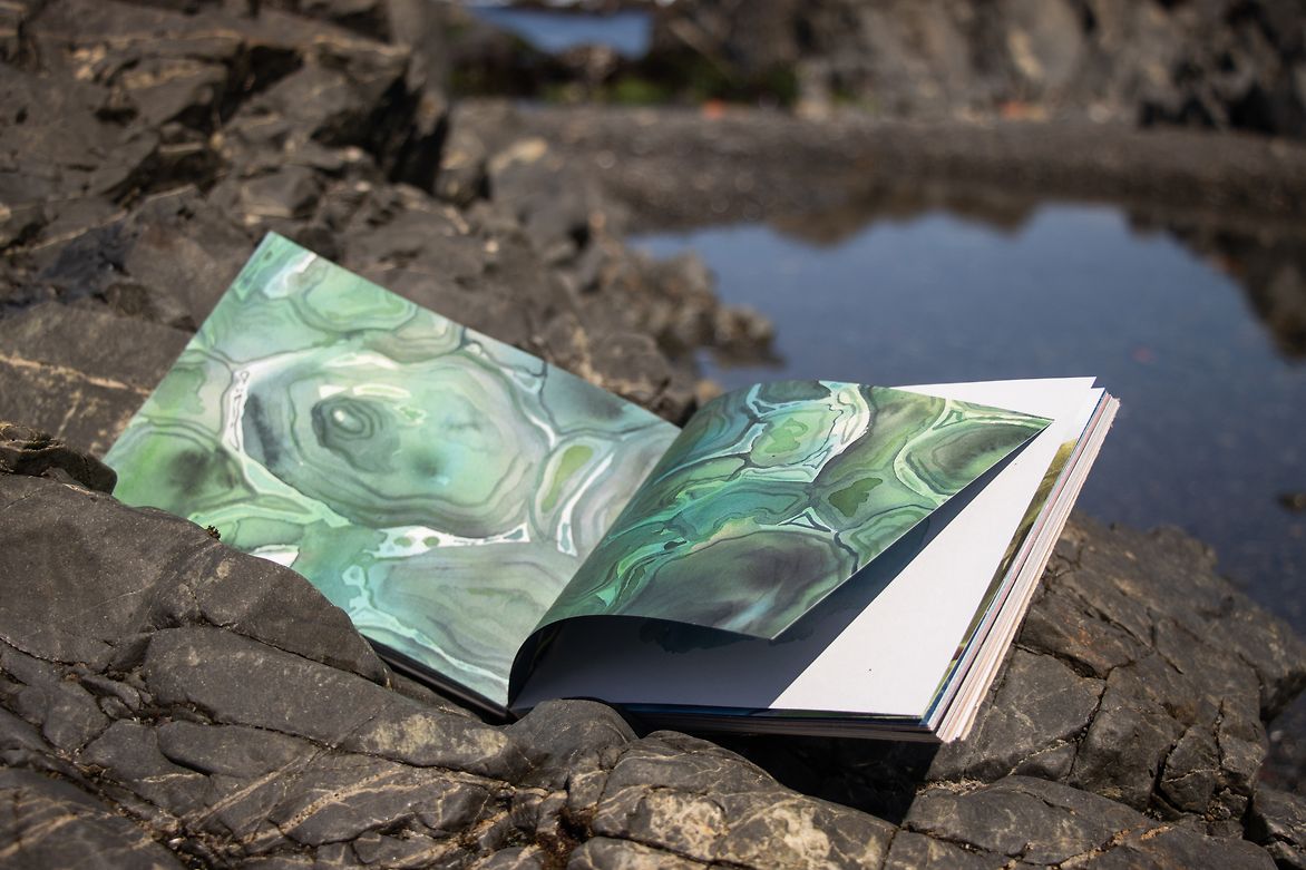 Each site is linked to an environmental theme, grounding the project in te taiao, and forming the book’s three sections. To reflect my journey of reconnection and the physical essence of my whakapapa, I used traditional media and experimented with mark-making—including making paint from earth materials, as my tūpuna once did.