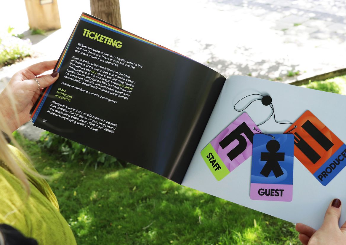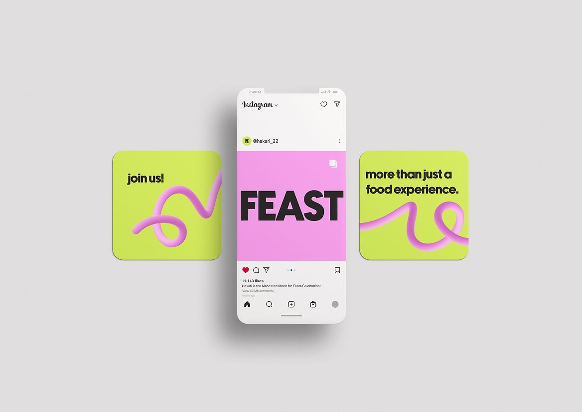 Hākari is a collaborative event organized by two Communication Design students, which showcased the stories of Otago food producers. Held on October 27th, 2022 at Otago Polytechnic, this ticketed event immersed attendees in street food experiences, videography, and design installations, all while emphasizing the use of local ingredients from our featured suppliers. In collaboration with the polytechnics Food Design Institute and Art School we were able to encapsulate a strong connection between design and kai. Living in a bicultural Aotearoa, it was essential that we acknowledged and followed Tikanga throughout this project. Hākari revolved around four essential Tikanga values: Manaakitanga, Kotahitanga, Mohiotanga, and Kaitiakitanga. Through Manaakitanga, we shared food and producer origin stories, fostering collaboration amongst our team, local food producers, and guests, as Kotahitanga united us all. Kaitiakitanga allowed us to give back and express gratitude to our local food producers, while celebrating their produce. Mohiotanga encouraged learning and sharing knowledge amongst each other. The event was broken into two spaces Ako (learning) space and Wāhanga (sharing) space. Short films of our local food producers were projected onto frames joined together with our branding to form continuous connection that led our guests in a one-way flow through the exhibition and onto the sharing / kai space. Highlighting the deep relationship between local food producers and the whenua, Hākari aimed to promote kai sovereignty and enable the sharing of knowledge from producers to guests. The goal was to empower guests to make self-determined choices for the health and well-being of their whānau. “Hākari” translates to "Festival | Celebration", perfectly capturing the essence of this event, as feasts hold significant importance in Māori culture, symbolizing hospitality and connection. To represent these values in a visual manner, we communicated through our branding. ‘The Squiggle’ used is an extentsion of a rectangle from the Hākari logo, jumping off the page. It represents an emotional and literal journey that a person may face in life at OtagoPolytechnic. ‘The Squiggle’ bends and curves with life's many challenges and changes, it flows from page to page and connects once piece of a story to another. With text or imagery throughout our brand, ‘The Squiggle’ is as a story telling device to lead the viewer to information. The squiggle was paired with symbols and a bright colour palette to bring these ideas to life. Brand collateral was applied across a wide range of applications including traditional branding, tickets, posters, a social media campaign (https://www.instagram.com/hakari_22/), physical exhibition material and graphics inside and outside of the polytechnic hub.
