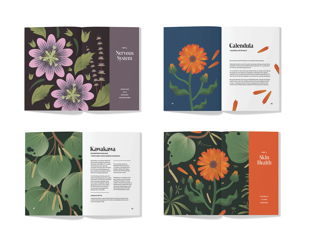 For this project, the client’s objective was to inspire connection with the healing powers of plants, using design that is fun, playful and engaging. The client is a naturopath who runs an online clinic for those based in Australasia. Naturopathy is a holistic, nature-based form of medicine that looks at all body systems to determine underlying causes of illness. The client wanted to market her book towards both existing clients and those who may not yet know about naturopathy, but are interested in learning more. The target audience is aged 18-40. The book would benefit the target audience through providing knowledge through a format that is fun, engaging and colourful, rather than a dictionary-like format and overwhelming with too much information.