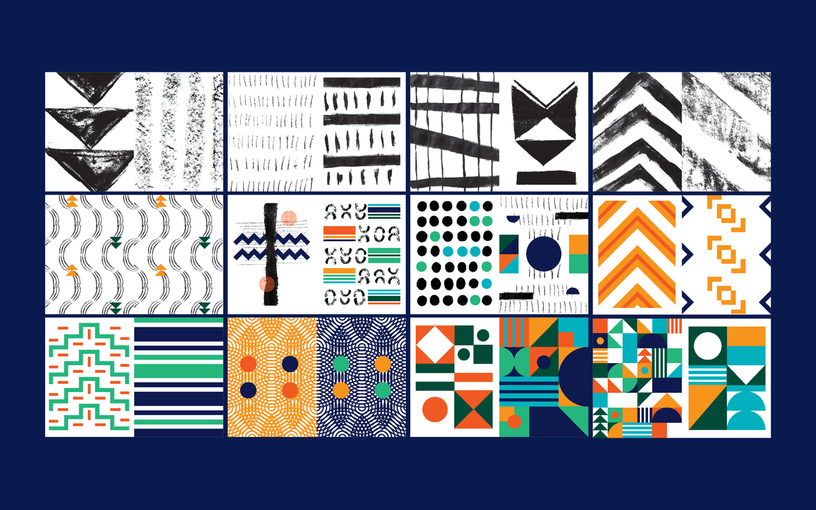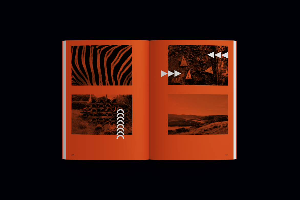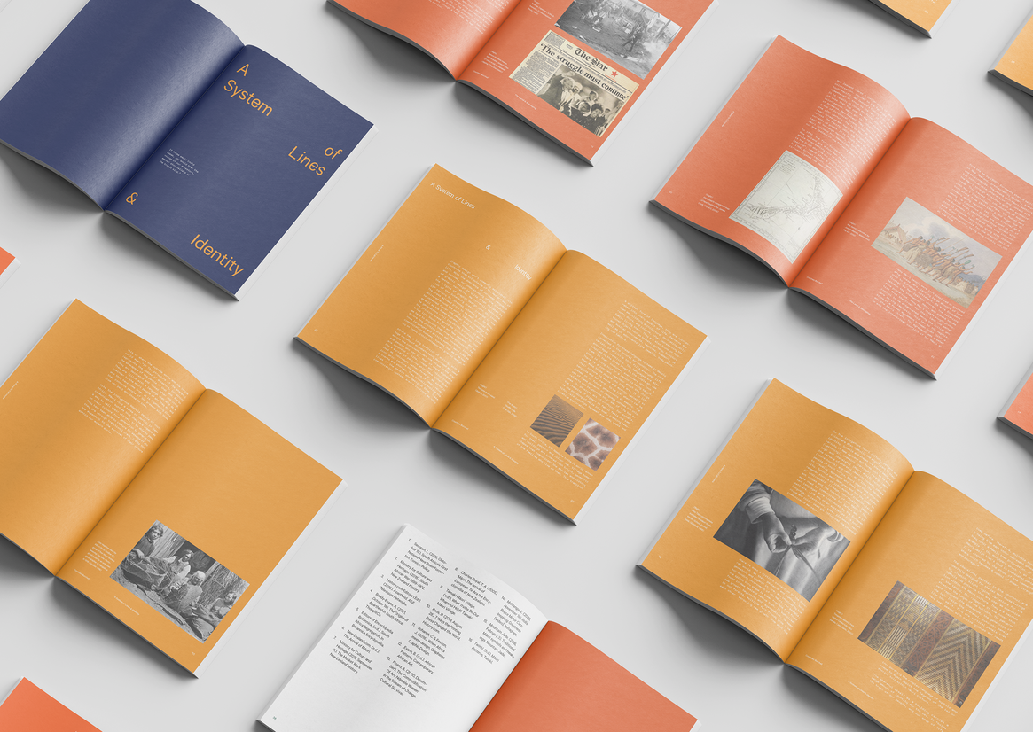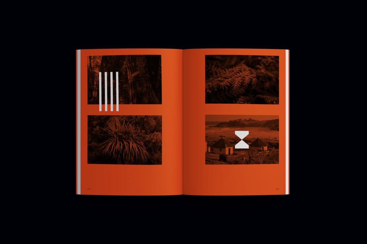 The publication is split into three sections; the first being an essay I wrote explaining my study into the historical context and cultures of the land in South Africa and New Zealand. Through this process of research and understanding, I was able to form ideas around finding belonging and how closely this is intertwined with the places and communities we find ourselves in. The later two sections are graphic explorations based on the essay. The Land and Belonging exploration section uses imagery to depict the process of migration; travelling across oceans and into foreign lands to make a home. Through photography, I was able to examine the relationship between the Whenua, the similarities as well as the differences seen in both countries. I was particularly interested in the textures and patterns that we can see in our natural surroundings, a duotone treatment is used on some of the images throughout this section to isolate these shapes we see within our surrounding landscapes. This also helped with the transition into the final exploration section of the book, A System of Lines and Identity, which uses pattern and shape as a language inspired by the indigenous communication systems used in both New Zealand and South African cultures. These patterns directly draw from the shapes seen in the Whenua previously and are used to express and form my own identity. The patterns begin as hand-crafted explorations inspired by the hands-on approach of indigenous cultures; showcasing natural texture and organic forms. Transitioning to purely graphic-based patterns as a reflection of my craft and what I do. The patterns narrate my story—of a journey made, a home created, belonging found and an identity shaped because of it all.