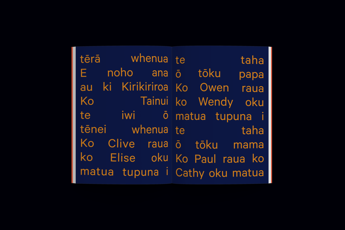 For the final project of my bachelor's degree, I was interested in exploring how graphic design could be used as a medium to engage with the process of embracing and reconnecting with heritage and whakapapa.