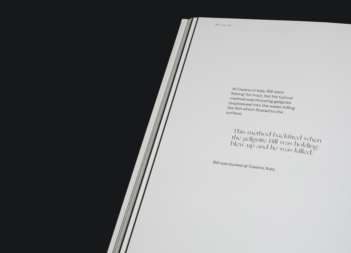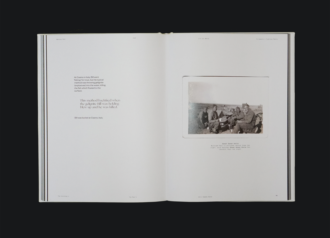 The main methodology utilised throughout this project was conversation. Reaching out to family members and having genuine conversations about what they knew about their ancestors, feeding off their excitement–creating a really solid body of knowledge and collating any images or paraphernalia.