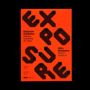 Luke Hoban, Jeremy Hooper, Raphael Roake Exposure exhibition visual identity system Massey University College of Creative Arts — Graphic