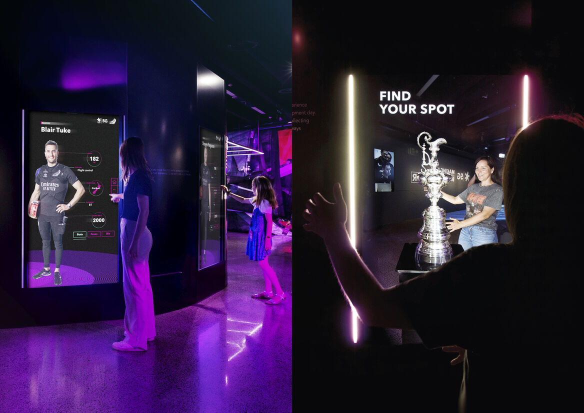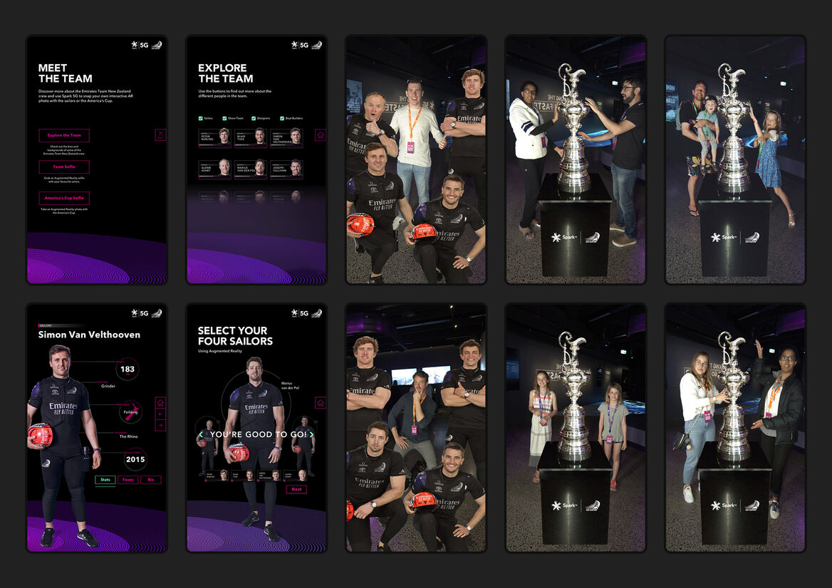 Meet the Team screens enabled immediate AR selfies with the legends of Emirates Team New Zealand or the Auld Mug itself.