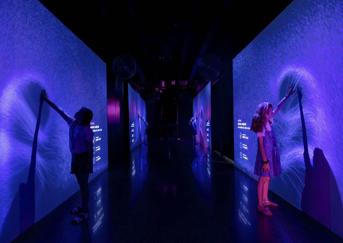 Wind Tunnel rendered interactive projections on the walls using real-time wind data with millions of variations. Then through clever programming and motion capture, it responded to guests’ movements and input.