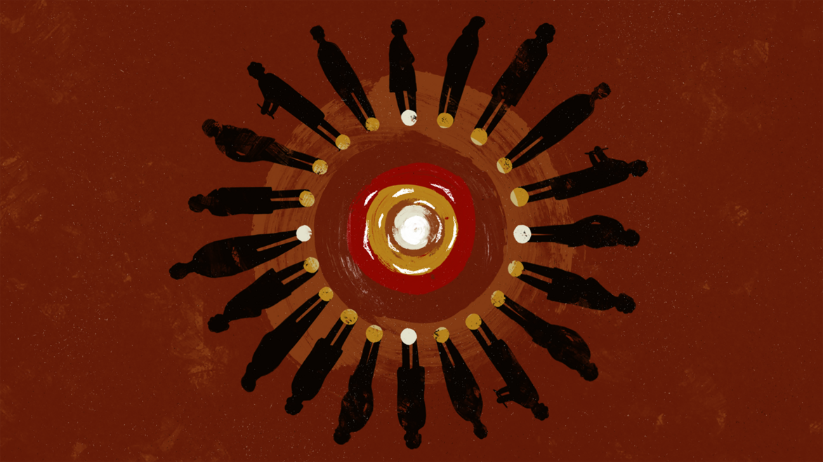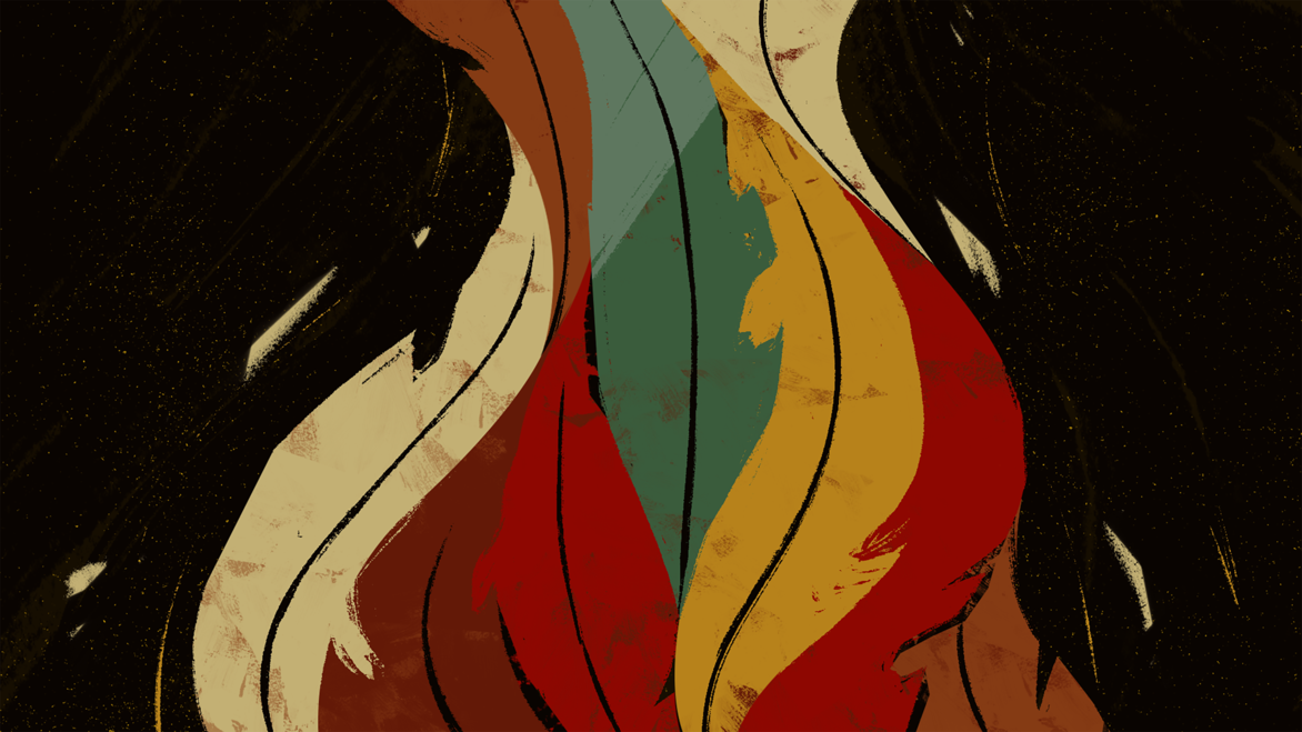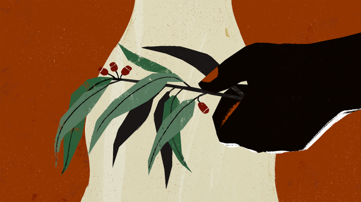 In order to create a piece that honored the values of Aboriginal culture and heritage, we took inspiration from the textures, materials, and patterns that we find in Australian flora. We used grit, red dirt, patterns on bark, rocks, eucalyptus leaves, and references to the sun and the moon. We wanted to contrast this rich, earthy world with modern day Gadigal land — concrete Sydney — to emphasize what was lost. There’s also nods to symbols of community found in Indigeneous culture which you can see in the Iyoria logo and elsewhere.
