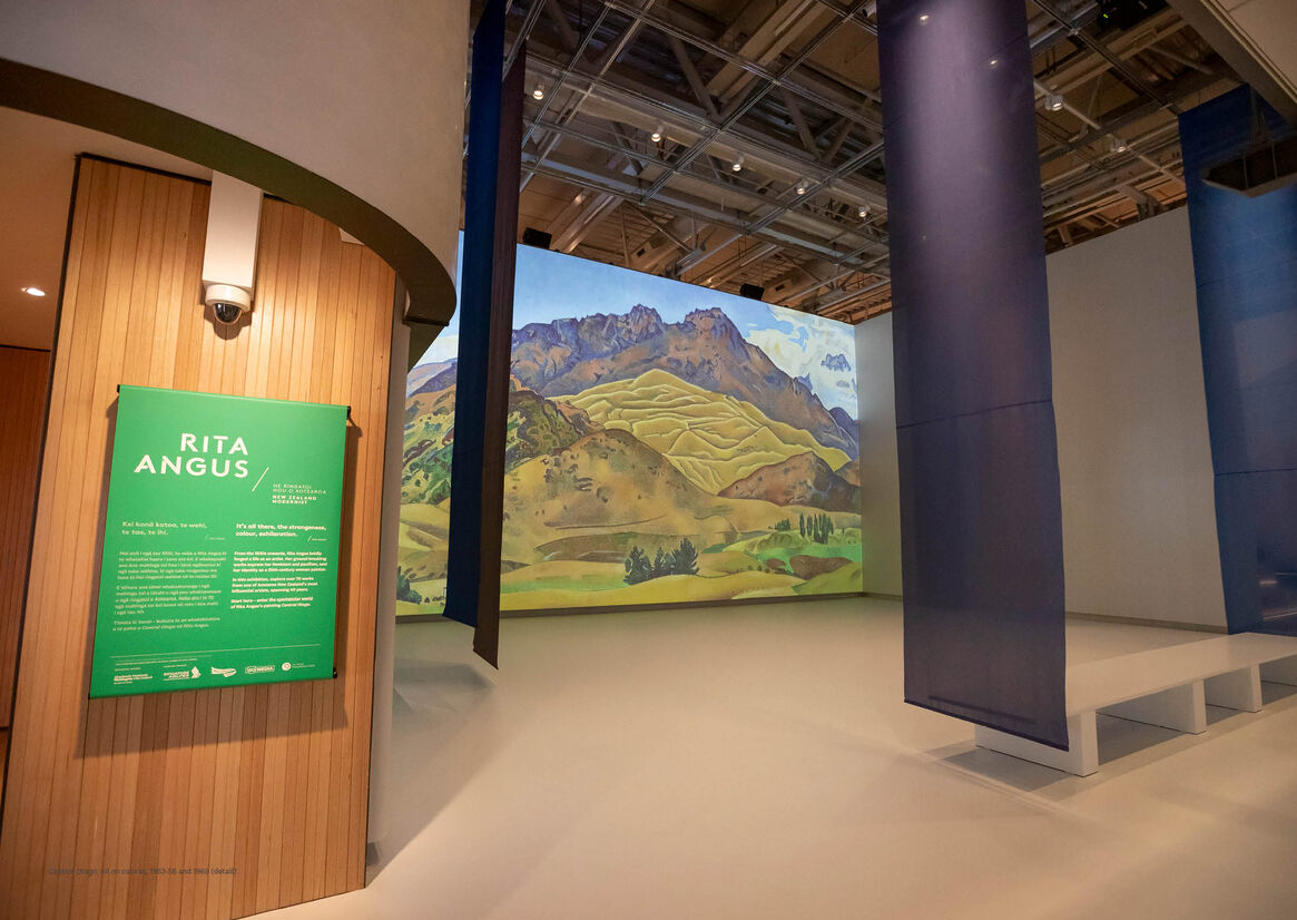 Visitors to Te Papa’s recent Rita Angus exhibition were welcomed into a huge, double-height gallery. 'A Painter’s Journey' was projected on facing, 9-metre walls. Music by Douglas Lilburn filled the room, mixed with natural sounds from the landscapes that Angus painted and, occasionally, the sound of paint brushing over paper.