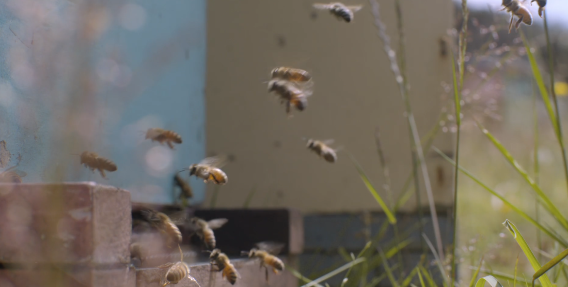 The music builds majestically as we follow an aerial journey to reveal the incredible geographical context of the land which is home to the honey bees.