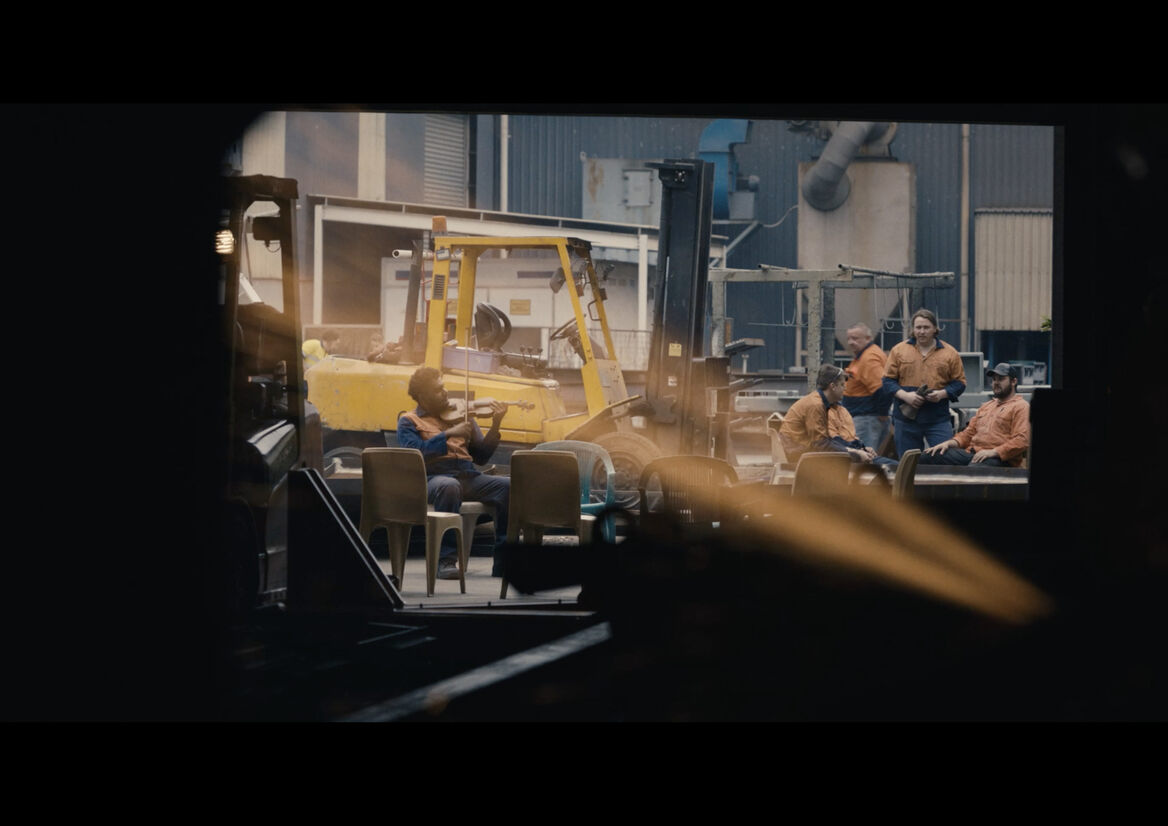 So, on his break at the mill, his workmates encourage him to play something and plays a classical version of a song that represents his day-to-day lifestyle. The 1985 rock classic and unofficial Australian anthem, ‘Working Class Man’ by Jimmy Barnes.
