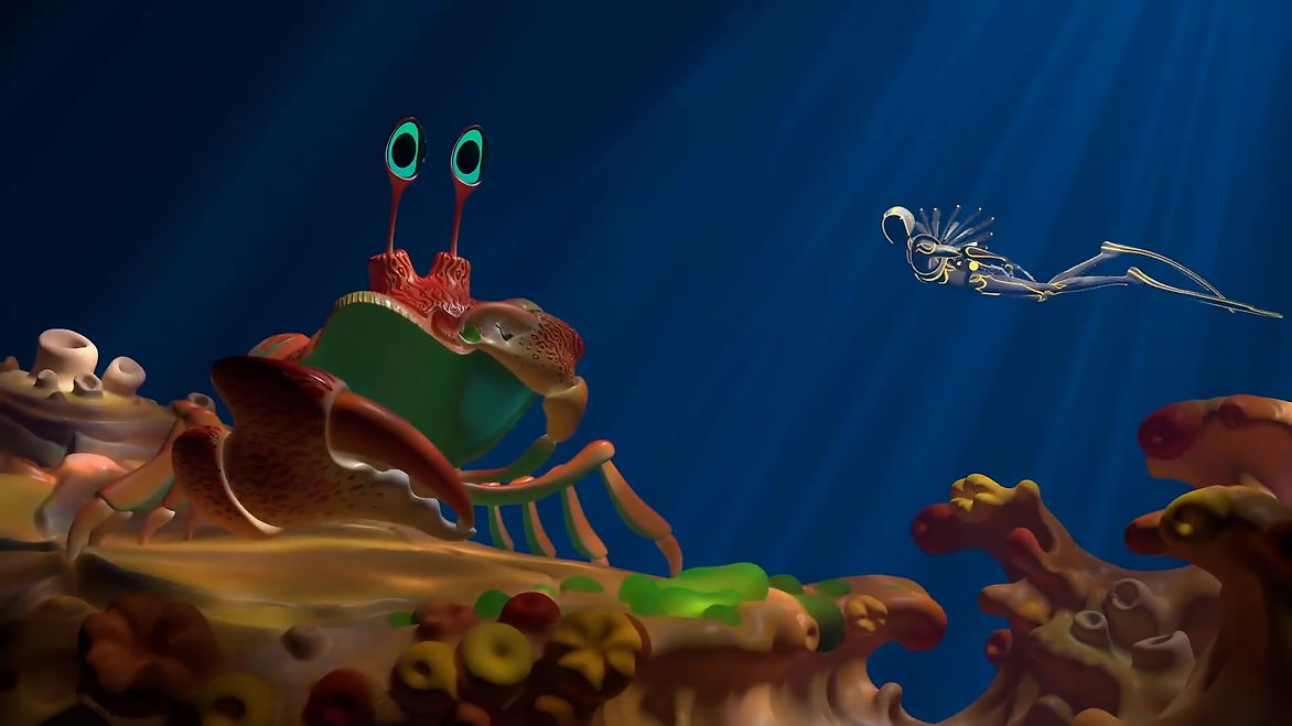The term "Interspecies" became the fundamental driving factor behind my project’s outcome. I felt that in order to illustrate such a wide term within my film appropriately, I needed an equally wide cast of creature character representatives to distinguish as the “other creatures” to my human diver. For this film being relatively short, I decided on three such creatures – a peculiar crab, a giant fish, and an amorphous shapeshifter entity I have dubbed “the Jelly”. The diver meets each creature in turn as he swims through deeper and deeper water – with every meeting revealing a distinct communicative dynamic between the human and the interspecies.