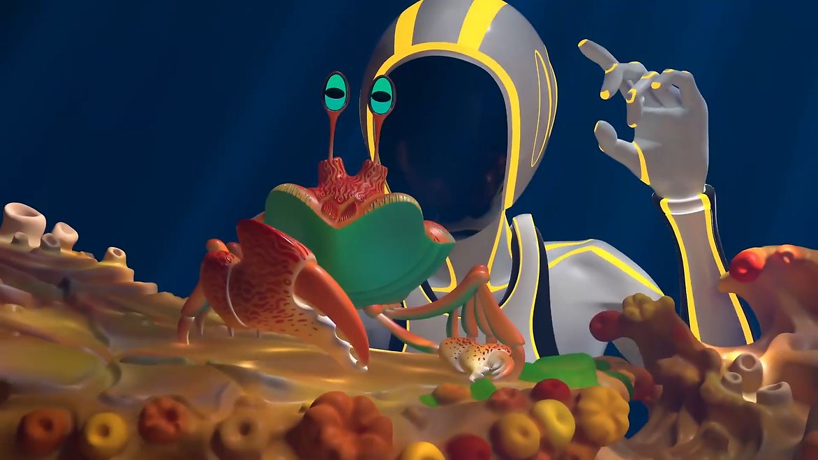 USO (Unidentified Swimming Object) is 3D animated short film about a diver traversing the deep ocean in search of sentient beings. Through the creation of USO, I explored this question; "How can I effectively portray interspecies communication within a comedic 3D animated short film”. My research led me to create a self-ironizing animated sequence that investigated Interspecies communication on a wide range of character-interaction examples. The term "Interspecies" became the fundamental driving factor behind my project’s outcome. I felt that in order to illustrate such a wide term within my film appropriately, I needed an equally wide cast of creature character representatives to distinguish as the “other creatures” to my human diver. For this film being relatively short, I decided on three such creatures – a peculiar crab, a giant fish, and an amorphous shapeshifter entity I have dubbed “the Jelly”. The diver meets each creature in turn as he swims through deeper and deeper water – with every meeting revealing a distinct communicative dynamic between the human and the interspecies.