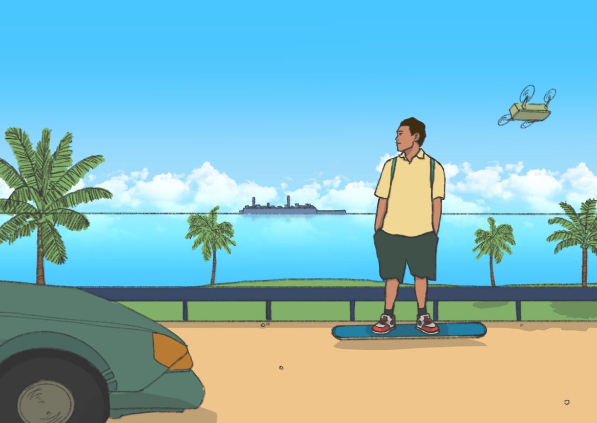 The goal with these three motion pieces is to give viewers ideas of what the future may look like in the Pacific. With our future in such an uncertain state right now with climate change and depleting resources, I’m hoping that showing the future result of the world will be able to give people a different perspective of the Pacific islands battle with climate change and to spread awareness of its effects. scenario is a high school student going about his day in a very environmentally friendly version of Niue run on clean energy.