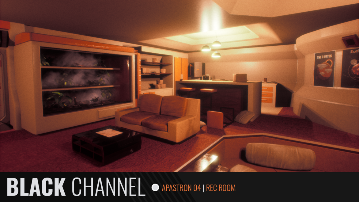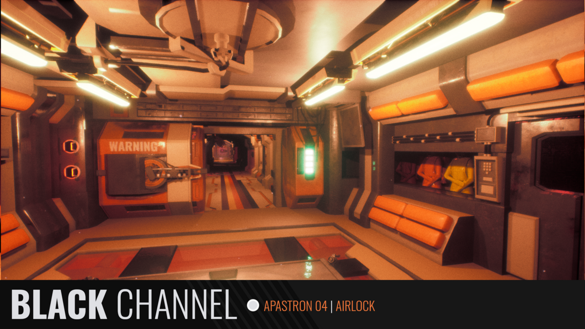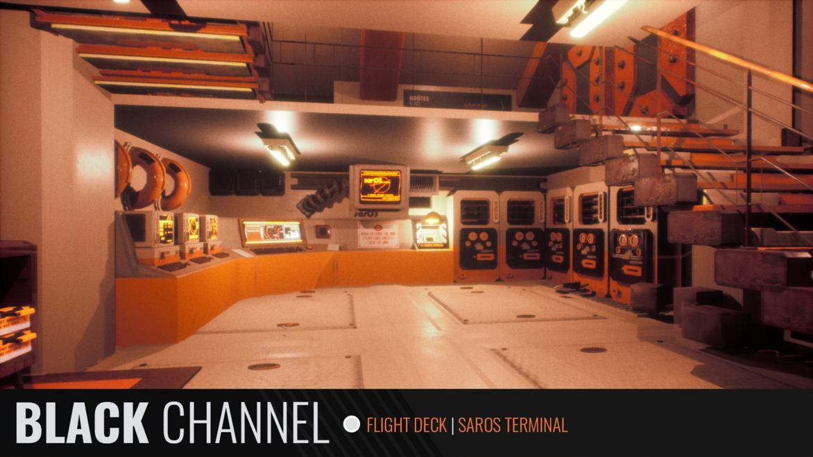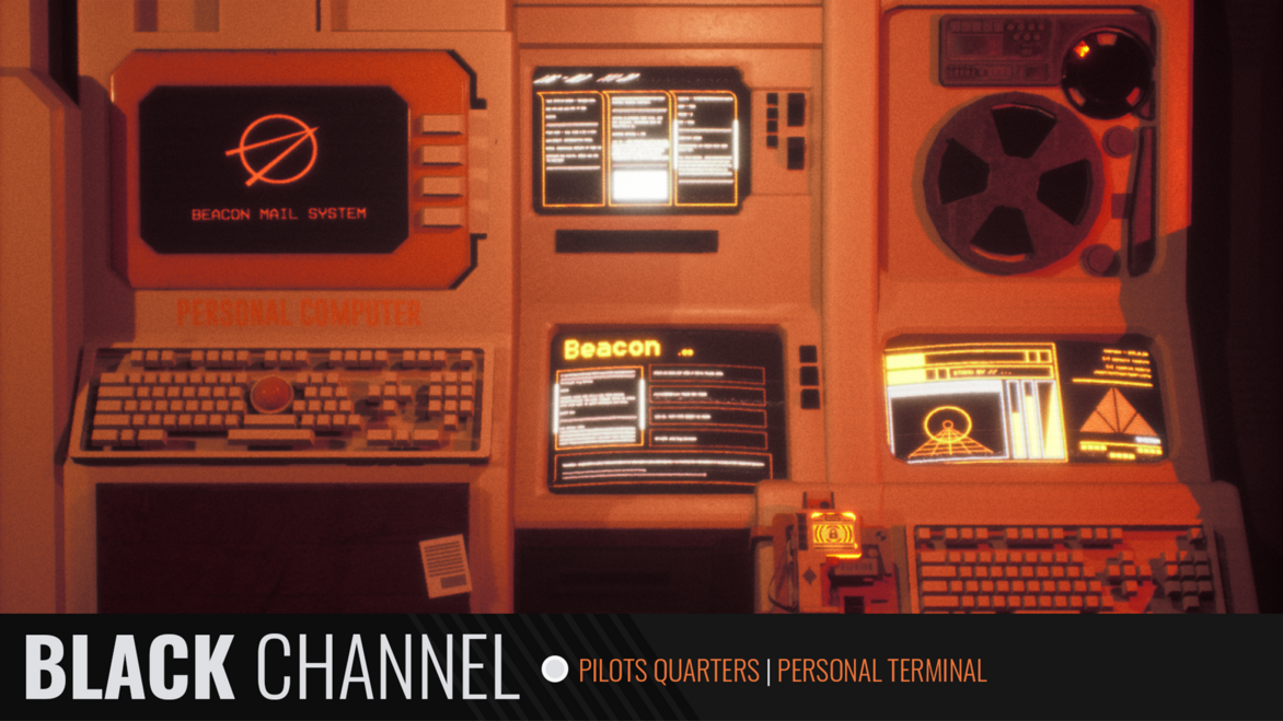 Black Channel is a 3D first person sci-fi horror game that takes place in a 70’s cassette futurism society on the edge of the Boötes void, inspired by games such as SOMA (2015), Firewatch (2016), and Alien: Isolation (2014). The player takes on the role of Markus, a newly recruited search and rescue pilot as he navigates the infamous ‘Black Channel’ alongside his A.I. companion sarOS, in his spacecraft, the Apastron 04. Our goal for Black Channel was to create a robust proof of concept ‘demo’ using Unreal Engine 4 with approximately 20-30 minutes of gameplay. The intention behind this was to showcase our core game mechanics, a segment of the full narrative with a satisfying conclusion, and our thematic intent for the horror elements.
