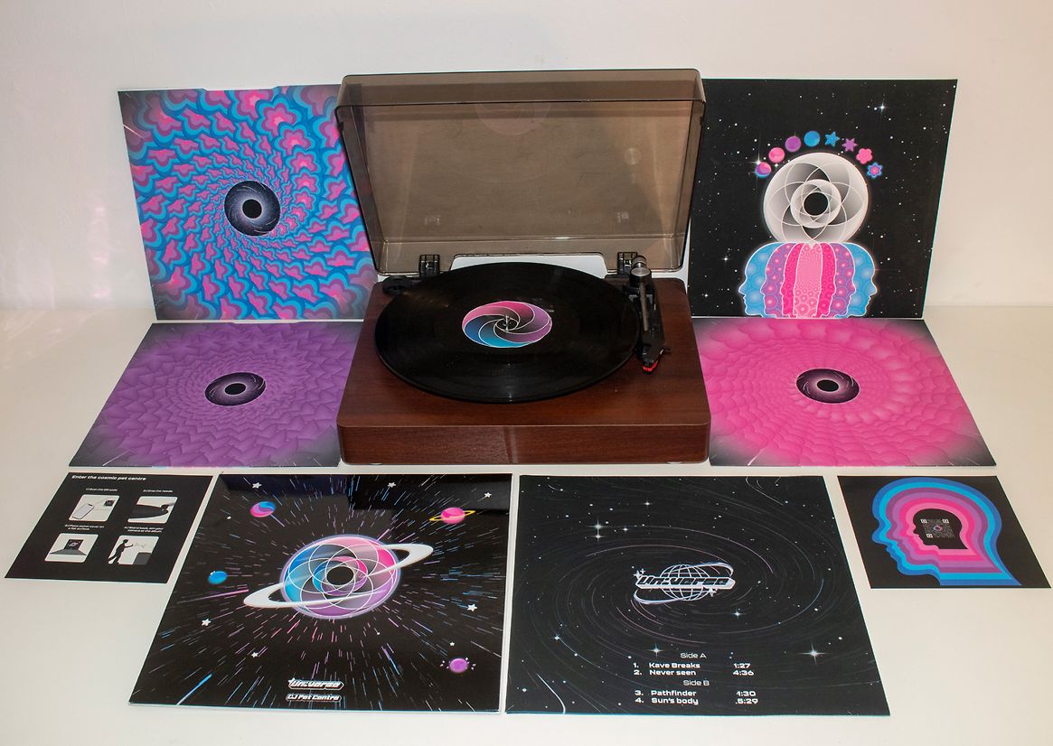 This project involved collaborating on the creation of a LP jacket for the esteemed Wellington Artist “ DJ Pet Centre” and his upcoming LP “Universe”. The jacket’s cover art serves as the gateway to the "Cosmic Pet Centre", where listeners are immersed in an imagined space unified with the music.