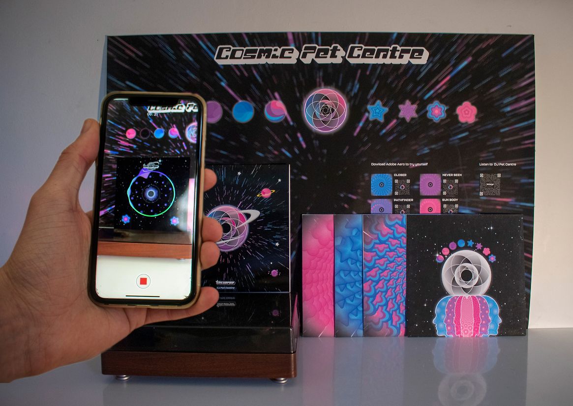 Cosmic Pet Centre was born from my desire to capture the joyous magic of gazing at an album’s art, and visualising the music coming to life. As music moves further into the digital age, pocket-sized album artwork has become more compressed and soulless, additionally streaming has created a disconnect between artist and listener. Research reveals there's a growing resurgence in LP collections, driven by Generation Z's appreciation for the visual and epistemic aspects of music. Vinyl's growing resurgence gives opportunity for new visual exploration with an album’s design.