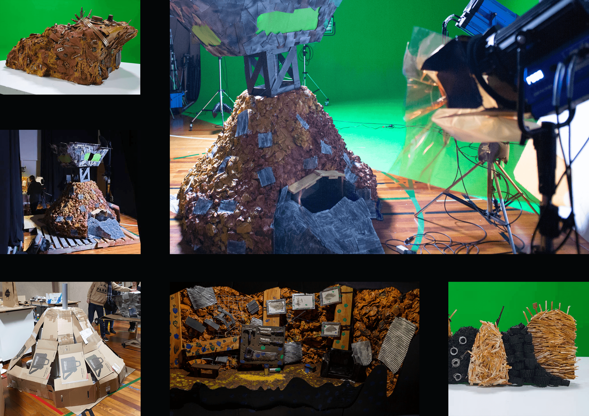 Stop motion animation has been a really valuable medium for us, because it’s tactile nature gets into the audience’s deepest sense of imagination. This lightens our delivery of the otherwise heavy themes. Hopefully with a bit of help from Hans & Tweet, you can spot the treasure in the junk.