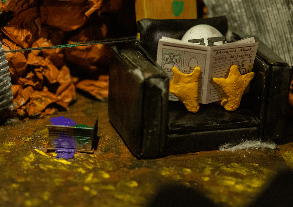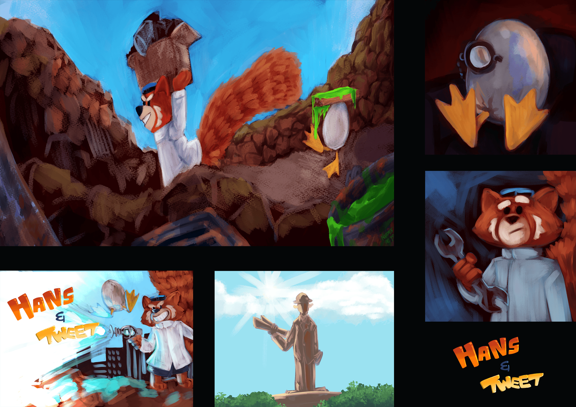 The story itself follows an eccentric, evil red panda named Hans who lives in the city junkyard. His dream is to become the best supervillain in town! With a trusty sidekick named Tweet, (an egg with legs), the pair put their latest invention; a ‘toaster gun’, to the test - by attempting to fire down the big mayor statue. Things don’t go as planned however…
