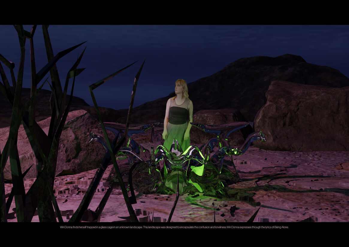 In this piece of work, I created a music video for Wellington-based musician Wiri Donna. In an interactive and immersive environment, I combine the themes of her new EP Release 'Being Alone' and the conceptual notions of my thesis work 'Into the Maw: a domain beyond.'
