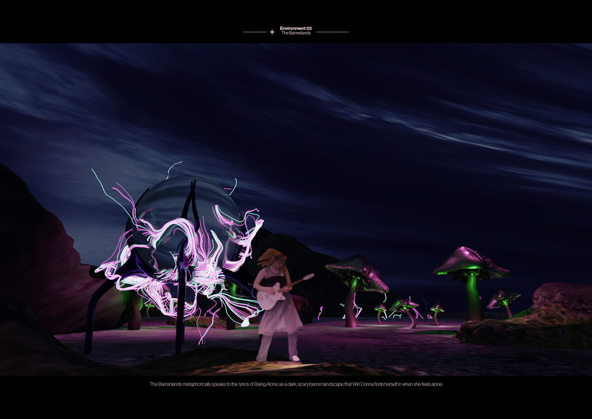 Within the music video, viewers can experience a world generated by experience and emotive parameters. Wiri Donna's world suggests sanctum within alternate platforms of existence, a platform where a non-binary entity prevails through the design and construction of virtual world existence, providing a means to explore, experiment and express oneself freely.