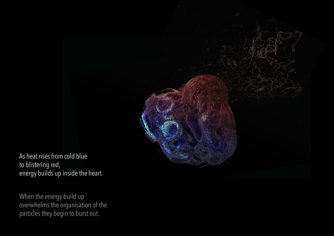 To answer this challenge, I have chosen to make a short film using the medium of VFX/3D animation. In making this film, the focus was always to approach the problem statement from an artful perspective and lead with the emotions of the symbolism rather overemphasise the academic. Using the idea of a ‘Creation Story’ as a thematic anchor for this project provided a more universal framework for the art direction and helped me to maintain a thematic consistency. Taking this approach also helped with the narrative structure, in that I was able to abstractly present the ideas behind the project as a visualised cycle of elements. Each asset speaks to a different symbolic element: mathematical science, biological science, spirituality and finally, nature. The assets, such as the heart, have been depicted at a high level of mathematical and biological accuracy using a software known as Houdini which specialises in generating ‘particle based’ VFX like water and fire. In short, the film attempts to visually connect these assets together, showing not only how they are linked, but also the beauty in their interdependence.