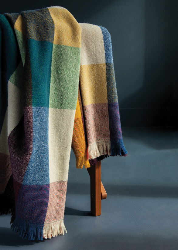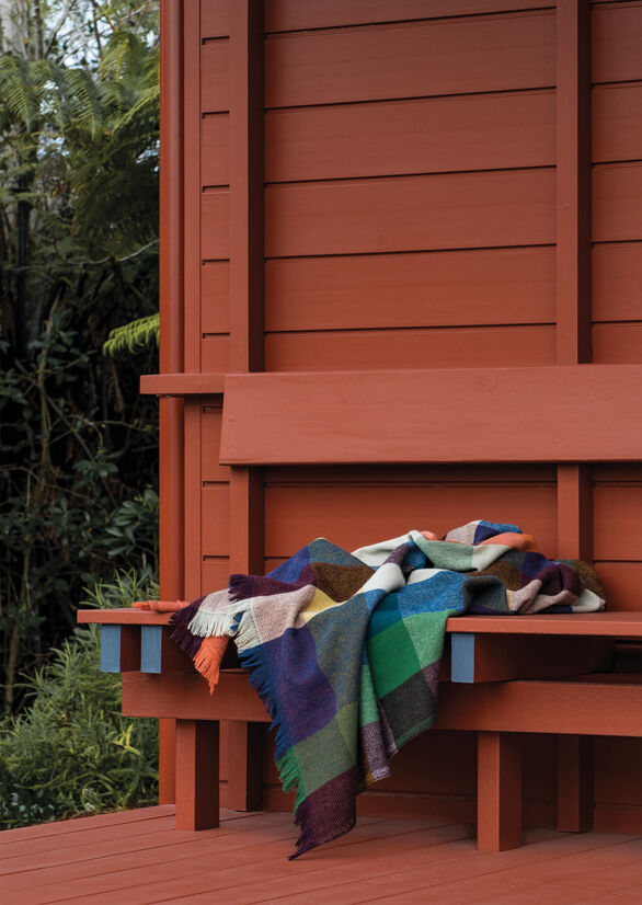During the design process, further reflections were around the New Zealand tradition of tramping. This included the idea of staying in cabins and huts where you might find blankets folded on a shelf; the colours a little faded but still interesting, and the wool a little threadbare. The Cabin blanket is a cheerful reimagining of these classic New Zealand heirlooms. An item we hope wears well over time and becomes a beloved textile within the home.