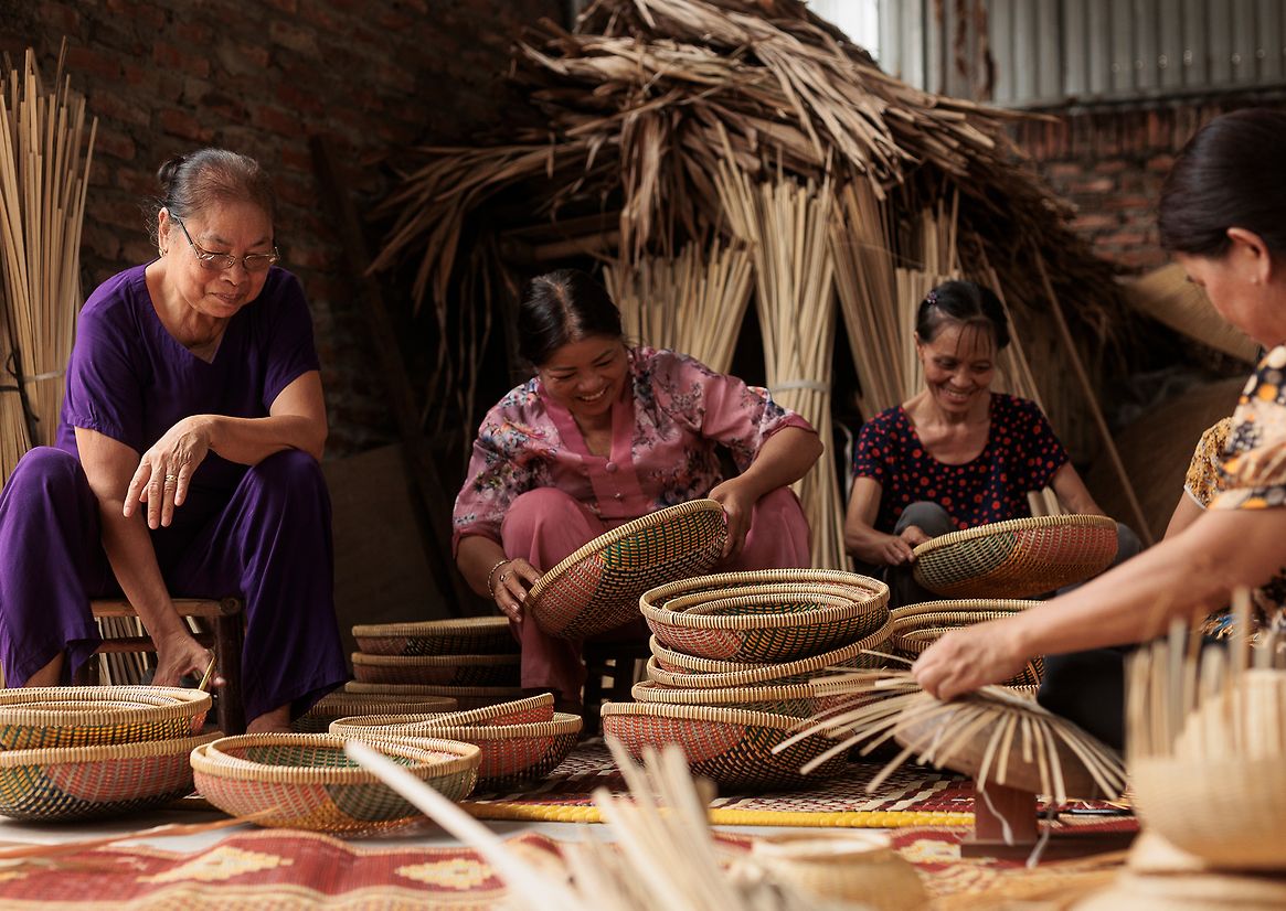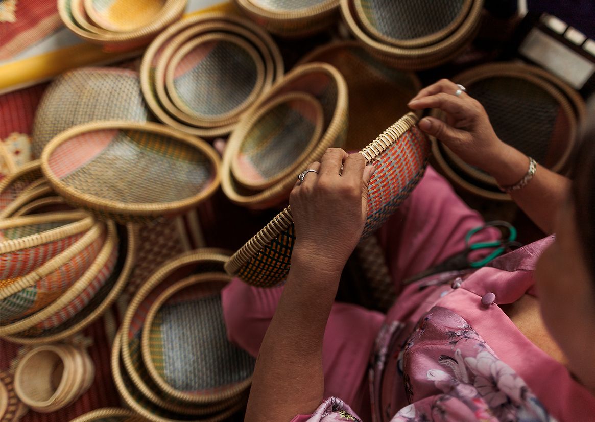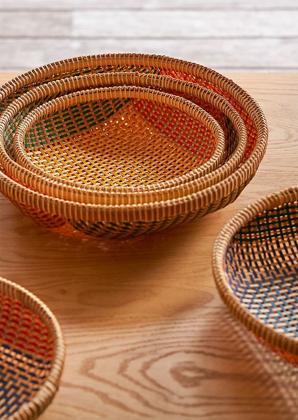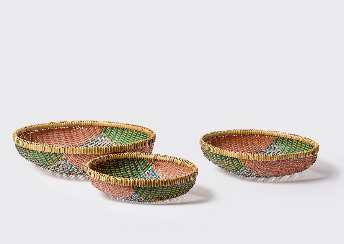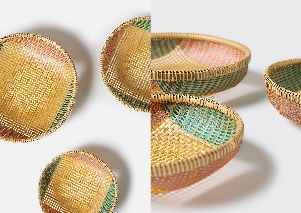 Traditionally, Vietnamese produce baskets are wide, shallow forms handwoven from bamboo. In recent years, these have largely been replaced by brightly coloured plastic alternatives. The Thao basket captures this collision of tradition and modernity—honouring the heritage of handwoven basketry while embracing the vibrant, contemporary colour palette of today’s markets.