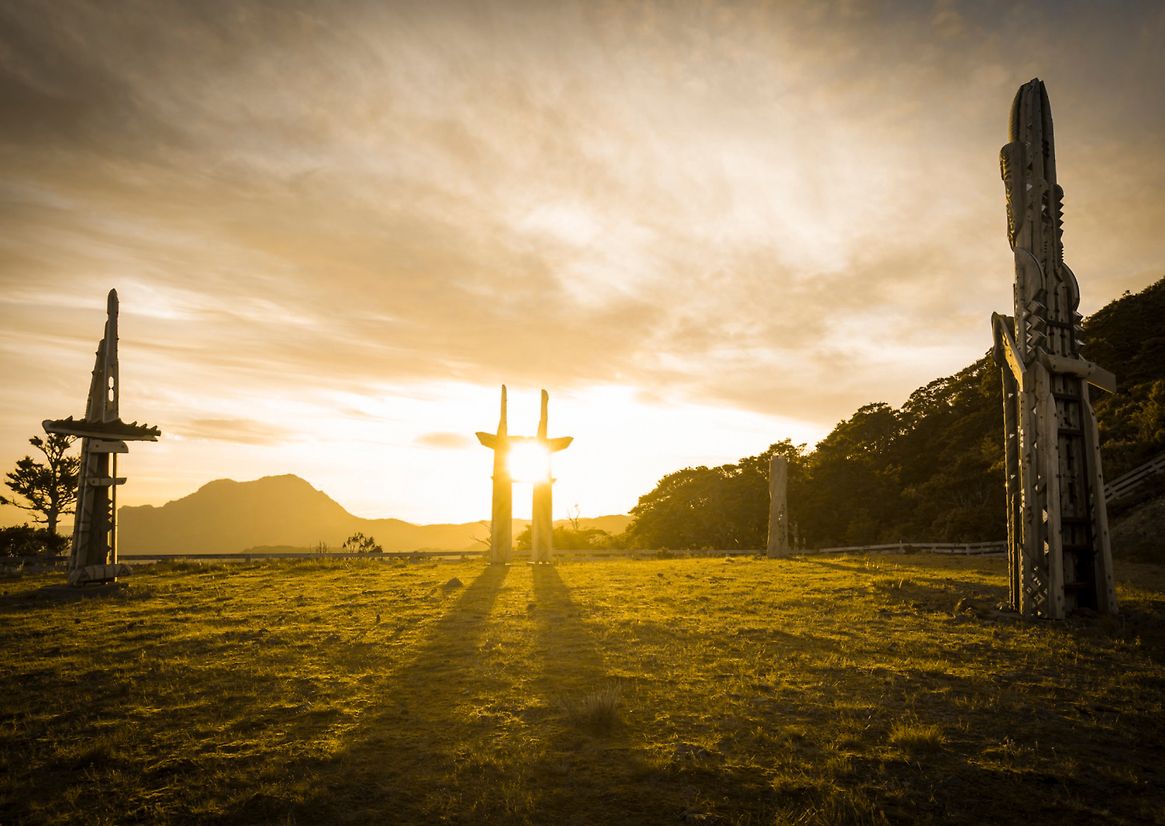 The golden yellow Kōwhai petals reflect the sunrise at Maunga Hikurangi in Gisborne. The region is known as “Tairāwhiti” – the light shines on the water – and is recognised as the first point in Aotearoa to greet the morning sun.