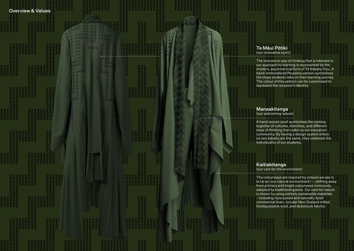 Through a collaborative kaupapa between a design team lead by Kiri Nathan, members of our education community, and students from Whitecliffe School of Fashion & Sustainability, Te Kākahu Hou is a symbol of what sets the New Zealand education experience apart from every other education offering in the world.