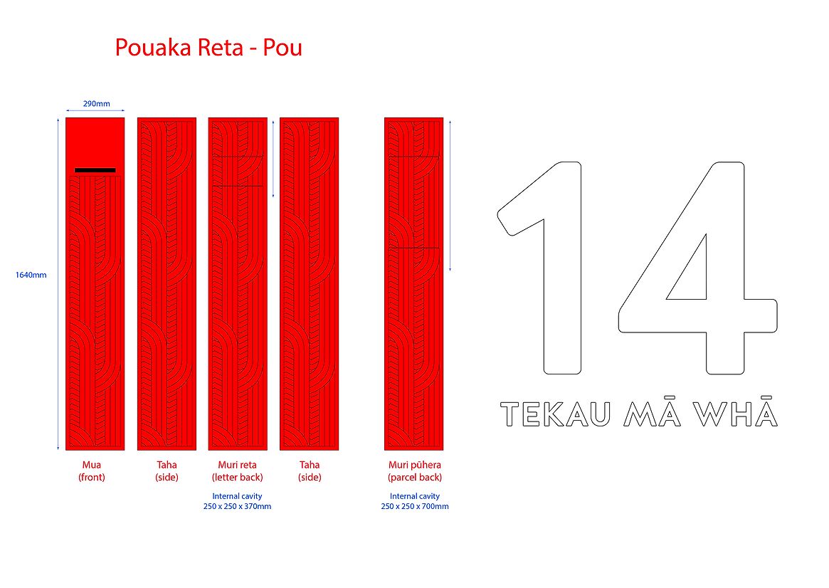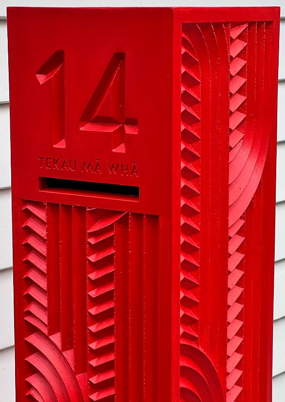 The Pouaka Reta Pouwhenua concept stands to reimagines the humble letterbox as more than a receptacle for receiving junk mail and parking tickets. It's a celebration of Māori identity and a statement of tautoko (support) for Toitū te Tiriti (upholding the Treaty of Waitangi), while honouring the history and cultural significance of Aotearoa. Mauri ora!