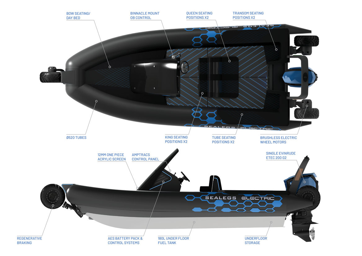 The integration of electric hub motors into the sea legs system is a good fit, saving space, taking the existing system a step further.