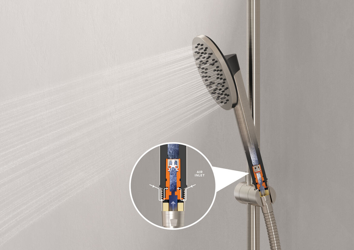 Not only limited to a visual experience, the handpiece is suitable for all water pressure situations and offers homeowner’s the freedom to create their ideal shower through various spray configurations. With a wide-reaching shoulder-to-shoulder spray, the handpiece can be experienced with a conventional flow restrictor, completely unrestricted flow, or with two distinctive Aerlux™ jets for mains pressure.