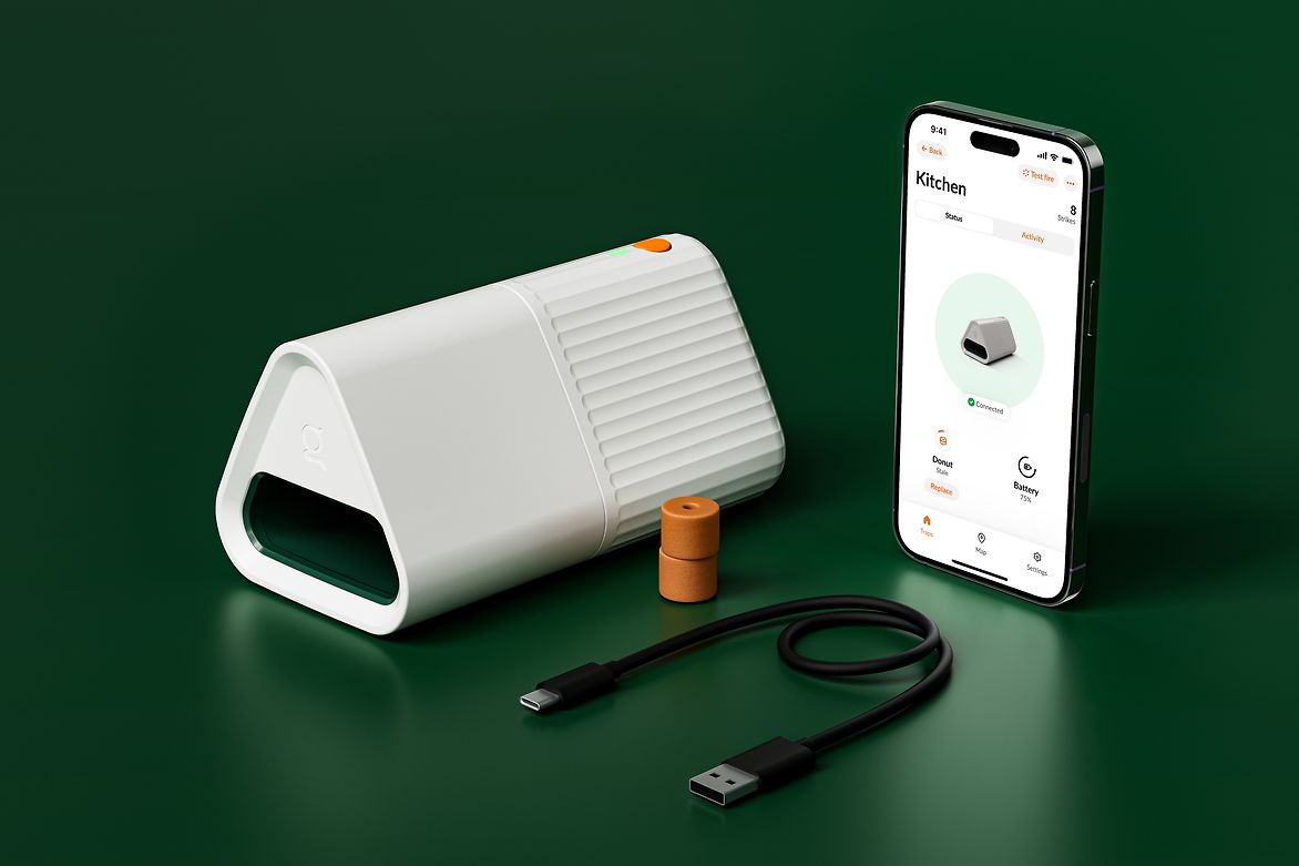 Our Mouse Trap is designed to be a calm confident friend that empowers the user in a stressful situation. No snapped fingers - it resets itself. No mouldy peanut butter - it comes with two irresistible long-life PB&J donuts. No messes or suffering - the A-Class Humane sensors and striker work together to kill mice safely, swiftly and cleanly. No maintenance - it sends your phone strike, refill and recharge notifications. No throwaway crap - just one clever mouse killer.