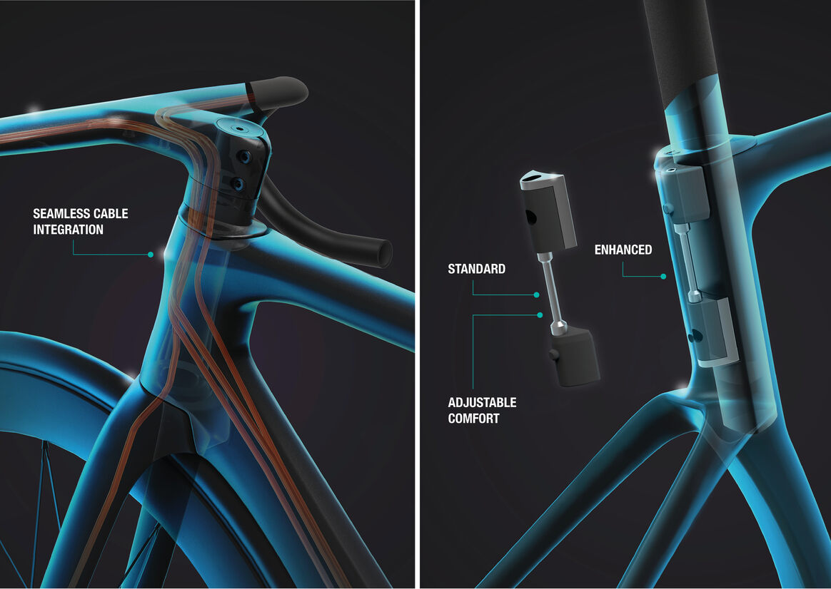 Creating an Aerodynamically efficient form factor whilst delivering a comfortable all-day riding experience is the holy grail of the Aero Road category. The deeper aero tube sections create the perfect synergy of aero and stiffness for a Pro Level bike but adversely produce a ride quality that can be jarring and energy sapping.