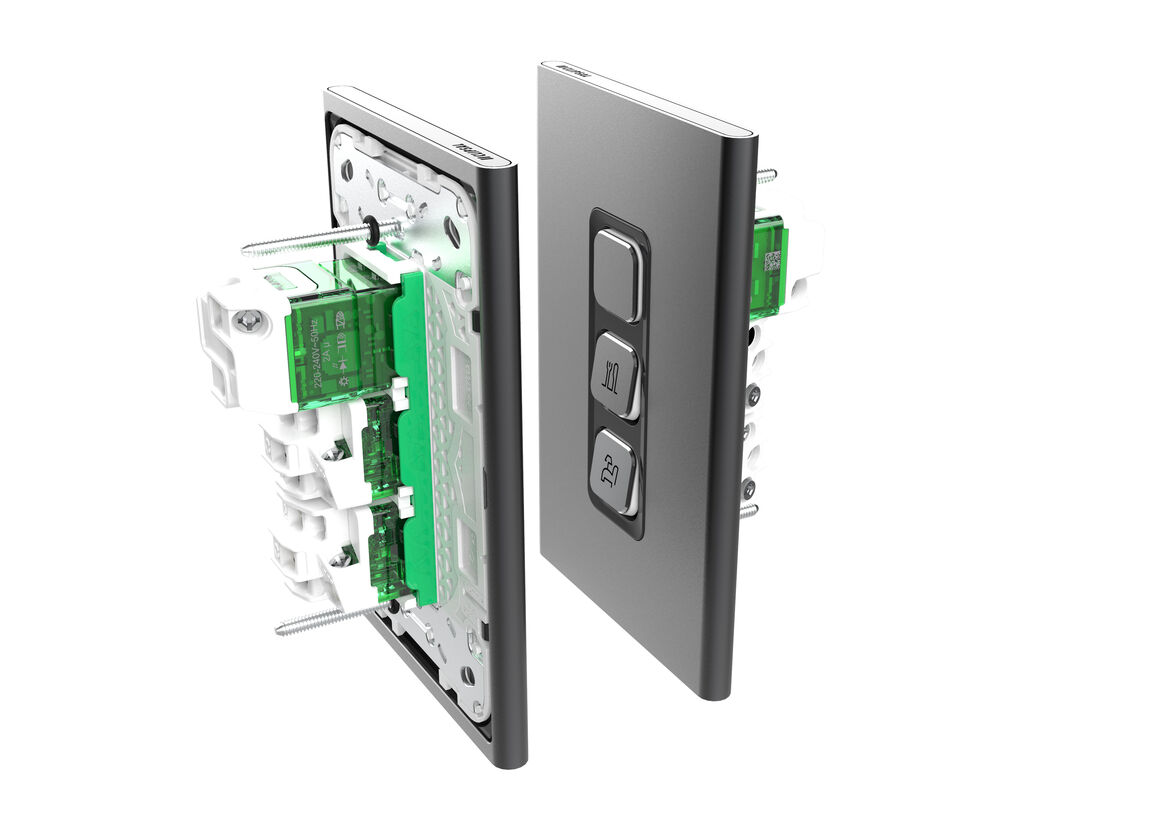 Homes are becoming more and more connected however, smart home solutions are often complex, require the entire switch grid to be replaced, or don't work with the existing wall plates at all. The 2AX Switch Module design allows the easy upgrade of our Iconic switch plates to a connected smart switch in seconds. The module requires no special mounting in the wall as it is compatible with all the standard mounting in the Pacific region and is easily scalable to a full smart home experience. Through the ability to connect to gateways and voice controls via external hubs, the 2AX module gives the end-user the ability to scale up to a full smart home experience. The design highlights its unique functions to installers by revealing its innovation and cubic PCB arrangement within its transparent casing and tiny overall size.