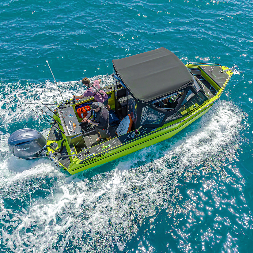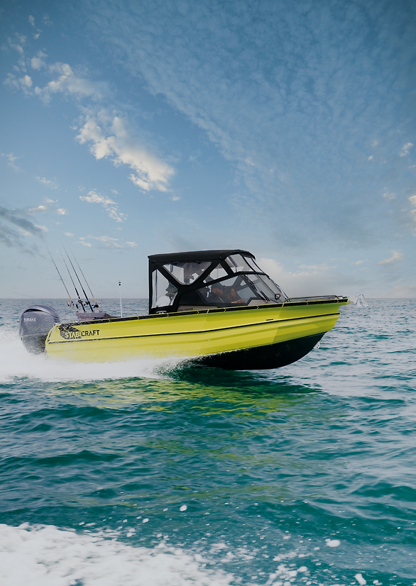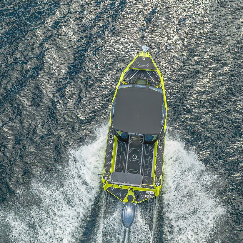 The 2050 Treker is versatile, performing well in various use cases without compromising its individual strengths. It offers flexible configuration options to suit individual needs, with ergonomics allowing for both sitting and standing at the helm and a spacious 6’5” high canvas. Its ocean-going hull enhances on-water performance, supporting our brand promise: "Adventure with Confidence." The bold aesthetics and thoughtful use of materials highlight the boat's innovative design.
