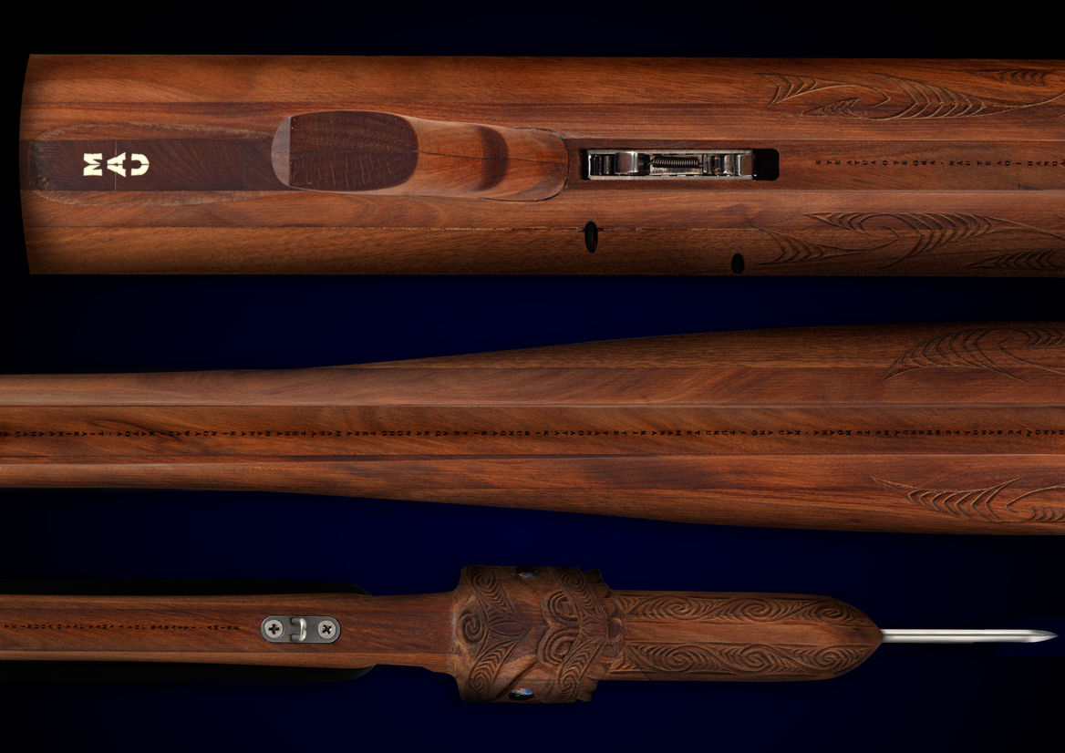 Mau deservingly speared gold. Imbued with cultural expression, seamlessly woven with contemporary technology and carved with sensitive form giving to create this lovingly handcrafted tool ready to tell new fishing tales.