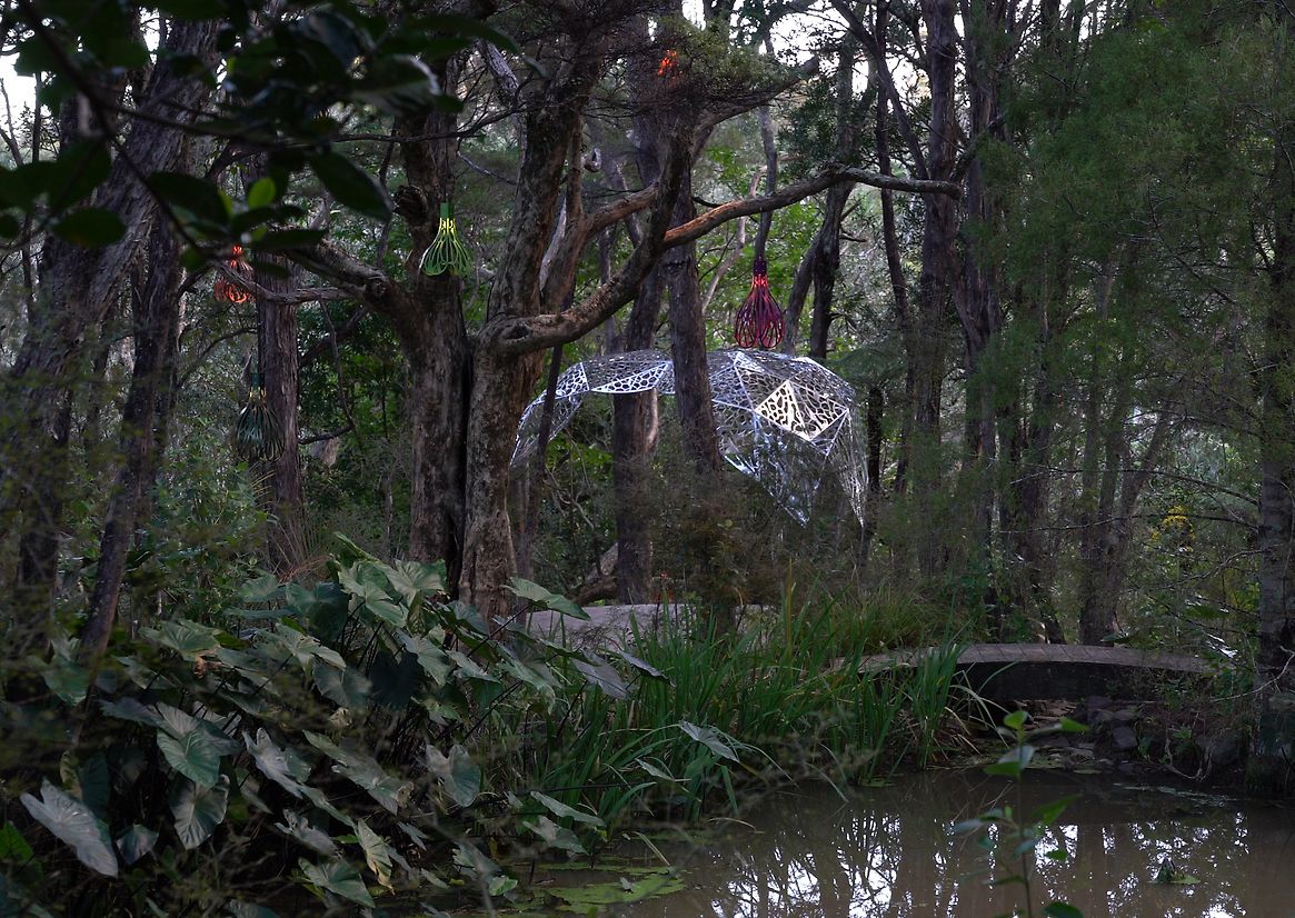 Our clients were opening up an area of native bush on their Northland property. They asked us to create an "element of magic” that responded to the environment and which also enhanced their experience of it. In particular, they wanted a setting in which to immerse themselves in the evening chorus of the birds. Tipua is visible from a new guest house being built nearby and from here has to offer a tantalising glimpse of something more out there in the bush.