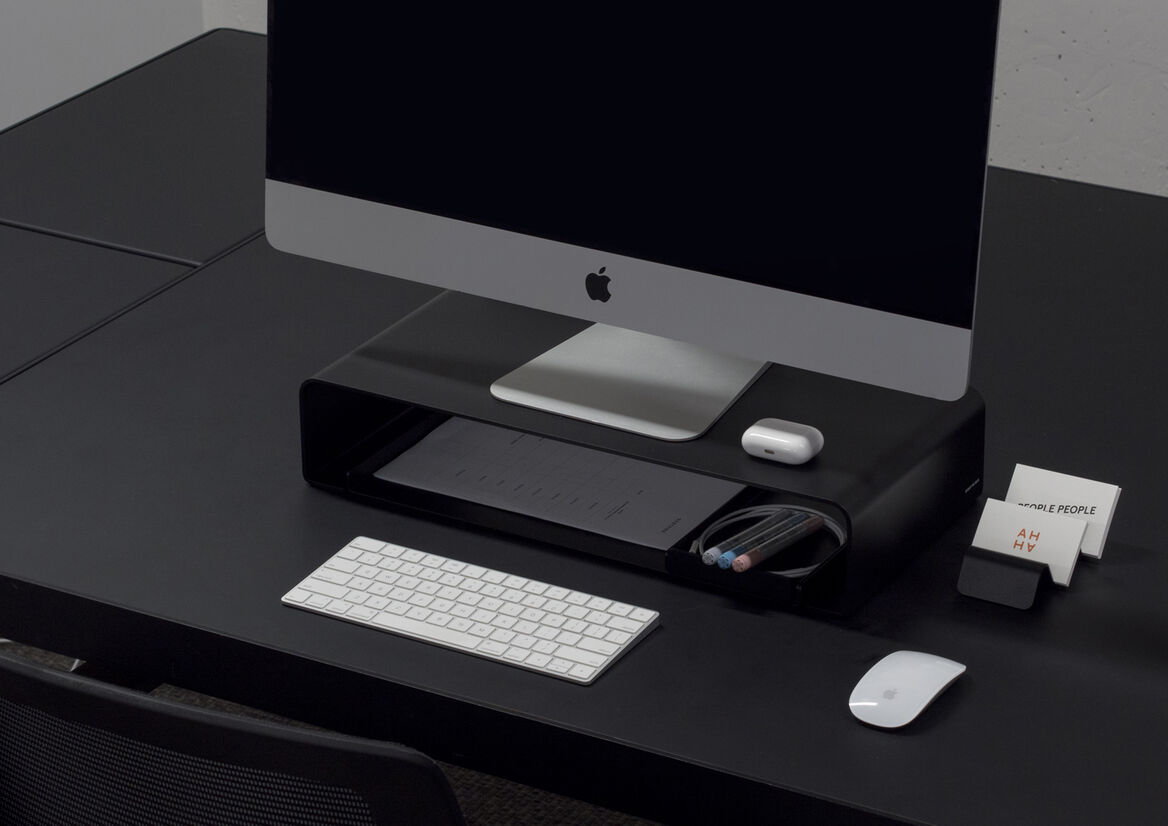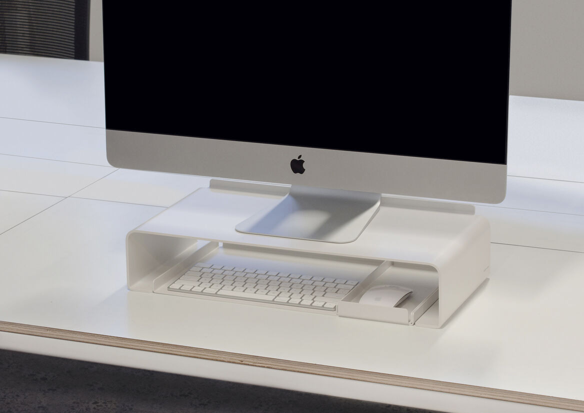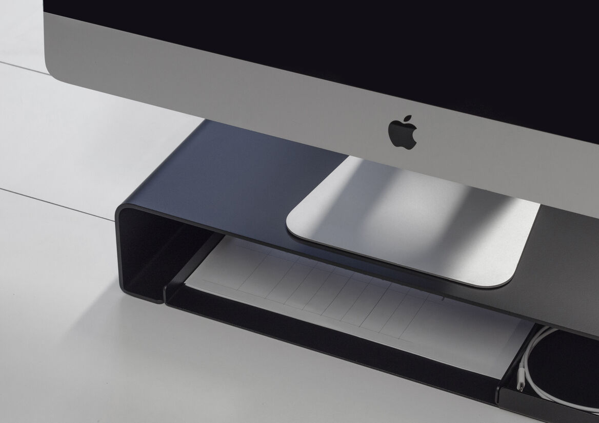 The complete Work Station includes a powder-coated aluminum monitor stand with a large & small undertray. The Monitor Stand elevates your screen to a more optimal viewing height whilst providing space for the large & small tray that fits nicely underneath. The trays can be used to store your loose papers, stationery, phone, wallet, keys in an organised manner.