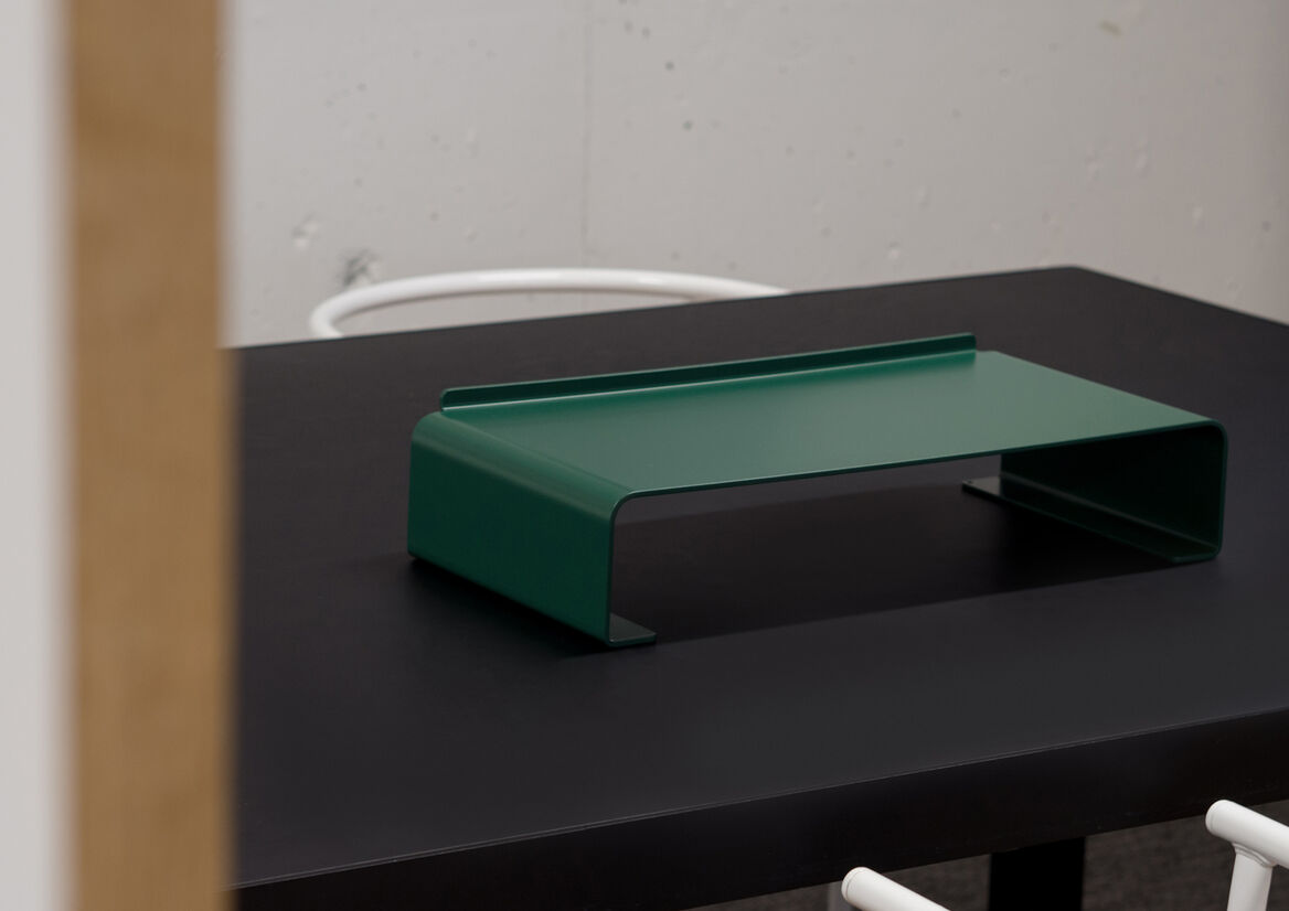 The main monitor stand component is formed from robust aluminum to withstand the weight of an iMac. Each fold is placed intentionally to give strength whilst maintaining a minimalistic aesthetic. Every aspect of the production process is designed and made in Auckland, New Zealand.