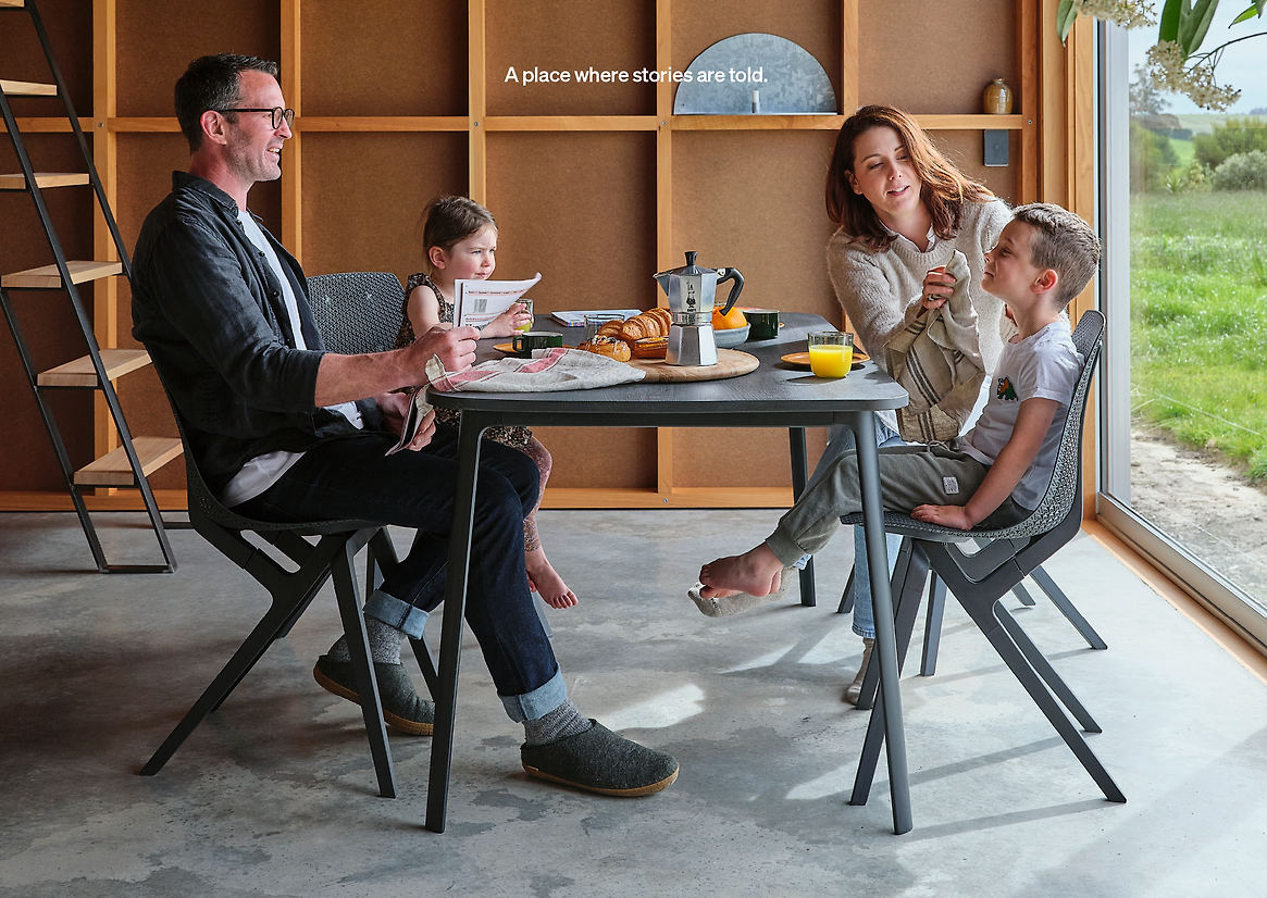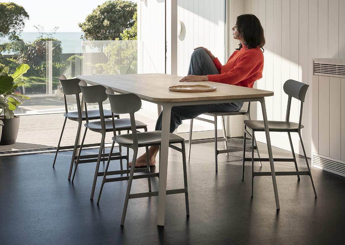 Dine is proudly manufactured in Aotearoa; each tabletop is handcrafted and paired with an extruded and cast aluminium frame made locally using 82% renewable energy.