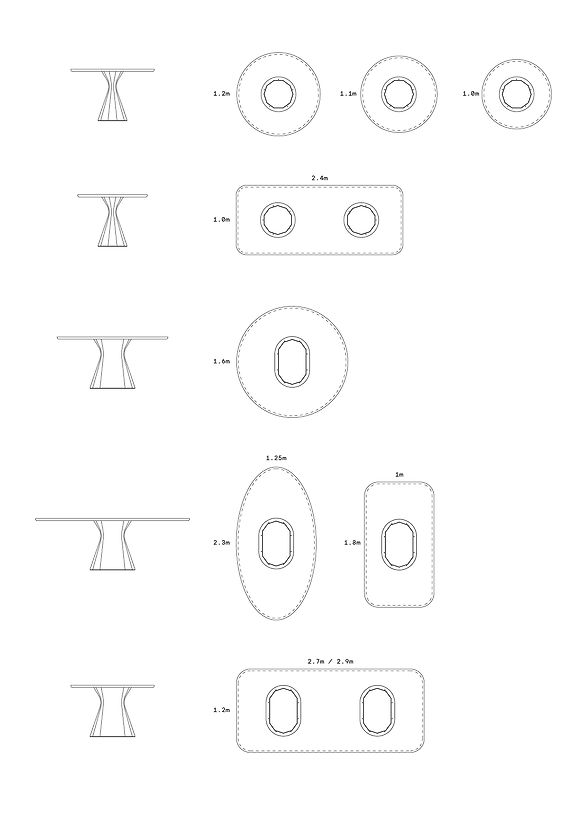The original pedestal is joined by a second larger version, and together they present a collection of both single and twin pedestal tables, in six variations.