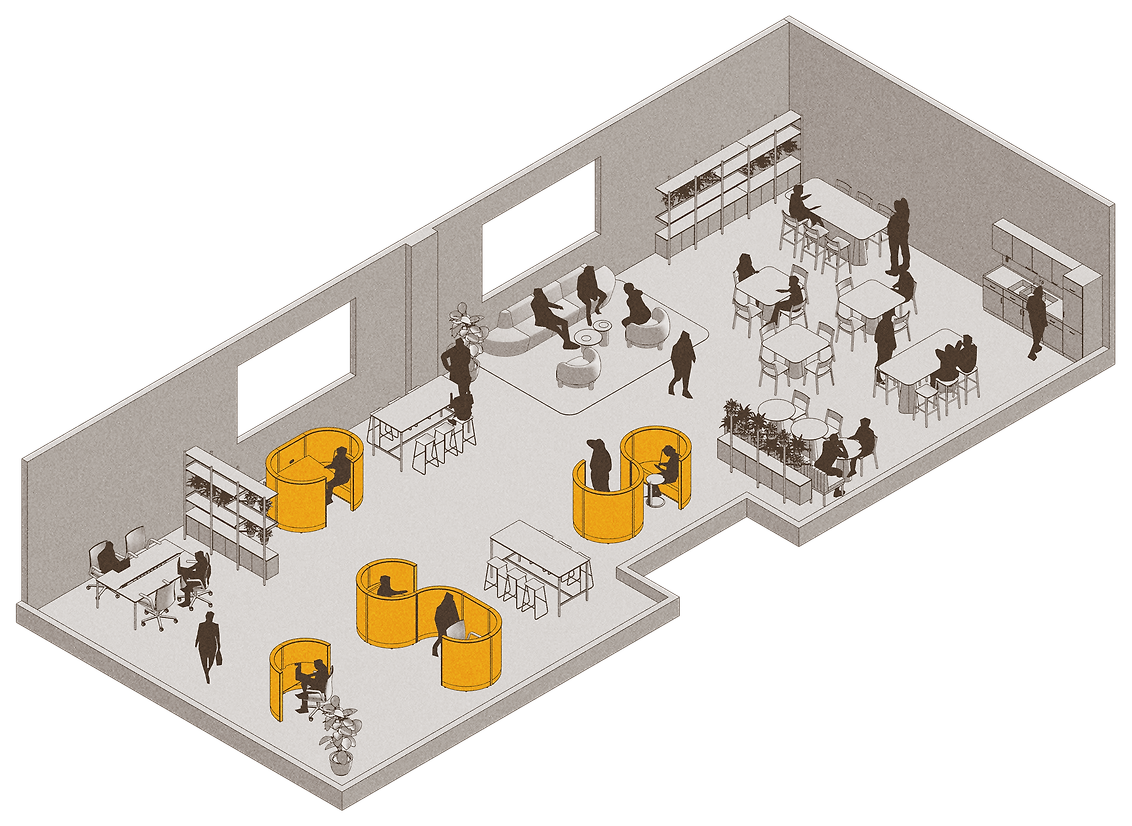 Traditional solutions often involved pods or booths that completely isolate the occupant. Our belief is that finding focus doesn’t require isolation, and that productivity and connection can coexist. By creating intentional boundaries for deep work while maintaining moments of connection, we can allow for concentration without disconnection.