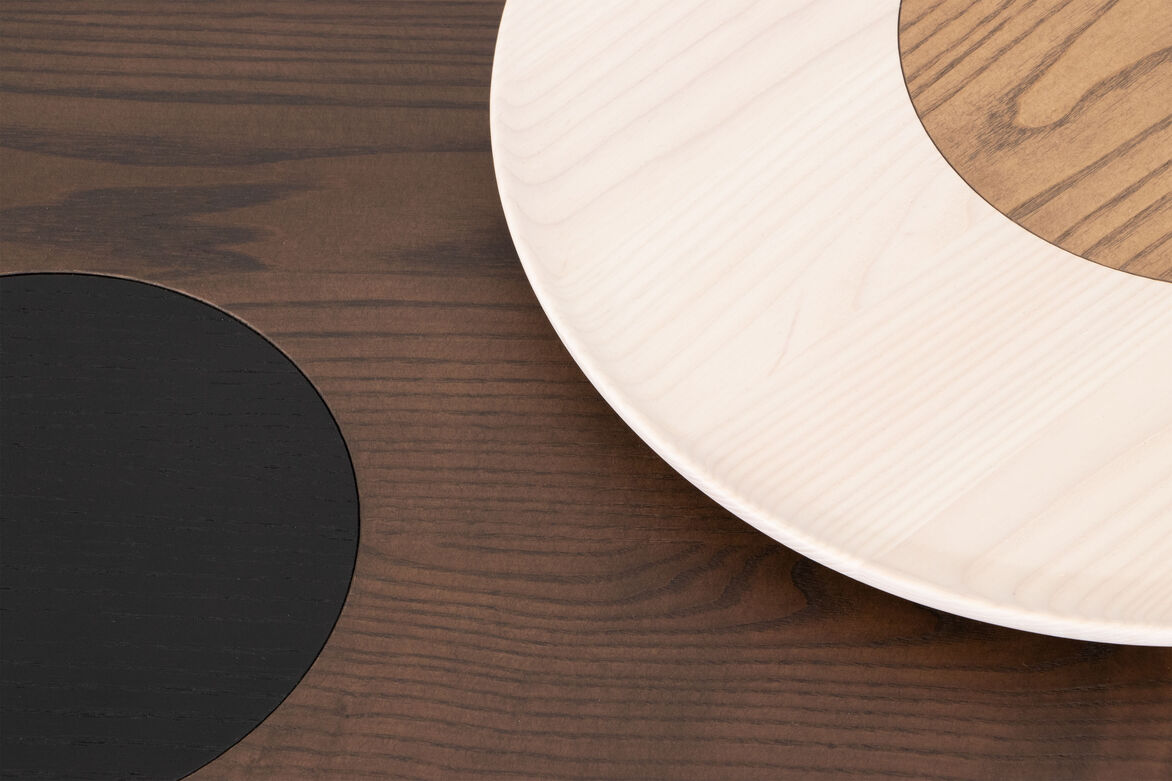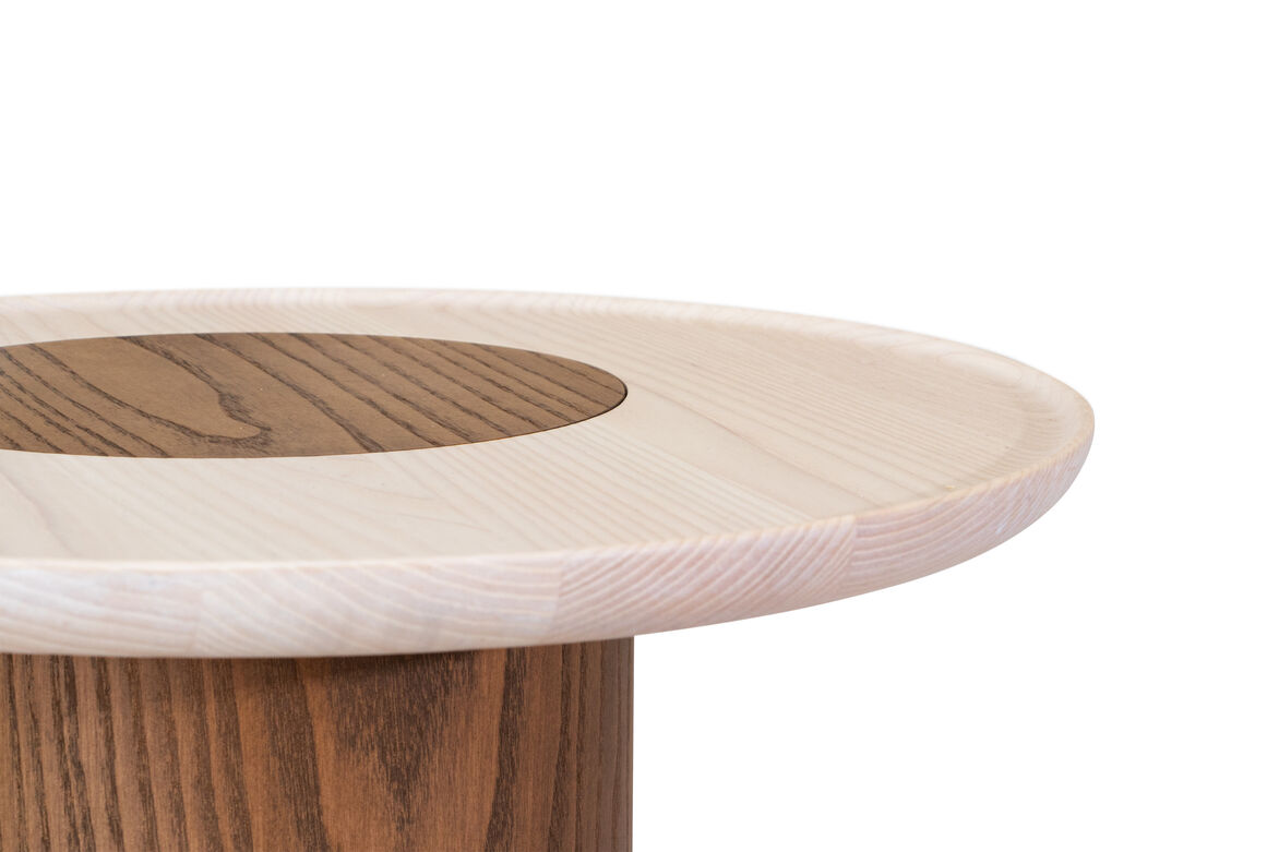 Available in five different combinations of heights and diameters and made from American Ash timber, Pillar tables are finished in a 2 tone stain or paint finish to create layered settings of shape and tone.