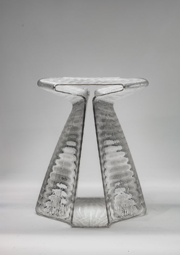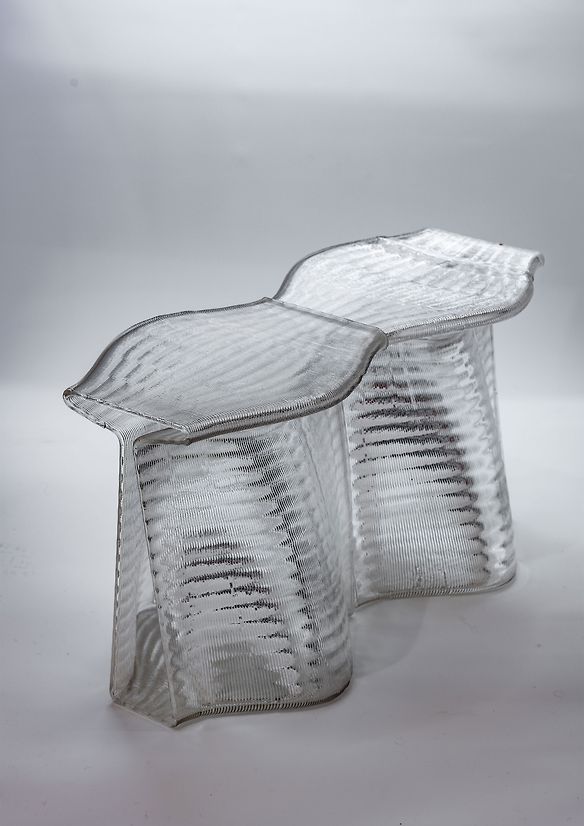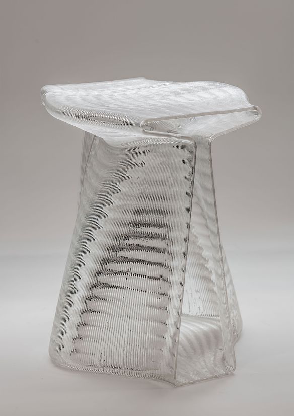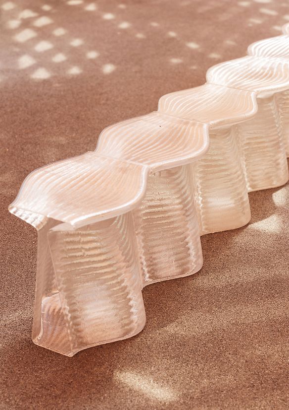 The Re-pete stools design is perfect in creating a genuine application for using additive manufacturing in large scale production. The simple yet clever decision to print the product laterally, firstly eliminates production waste, but equally creates an elegant, translucent providing a poetic and rhythmic aesthetic that is further enhanced in its outdoor environment with the interplay of light and shadow. Re-pete is equally as beautiful on its own as it is when lined up shoulder to shoulder.