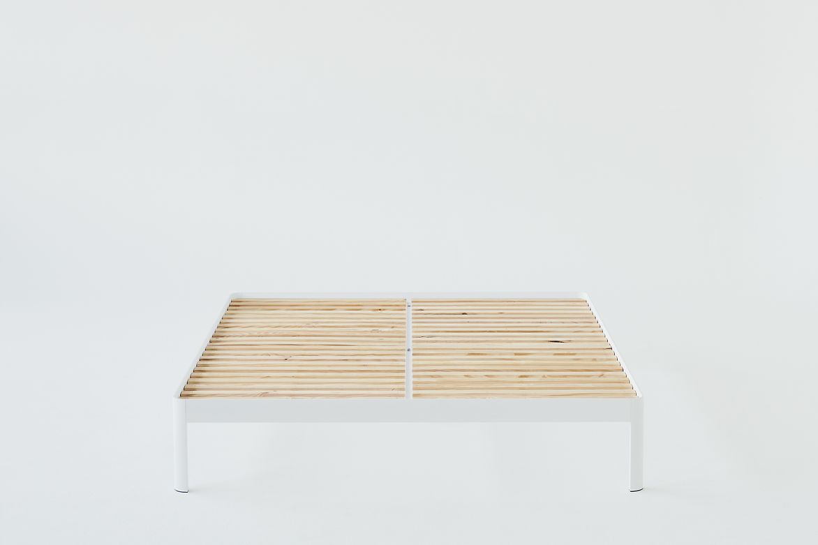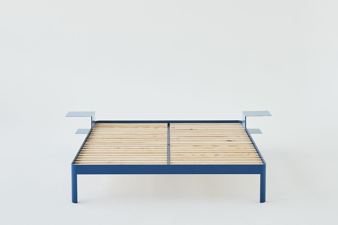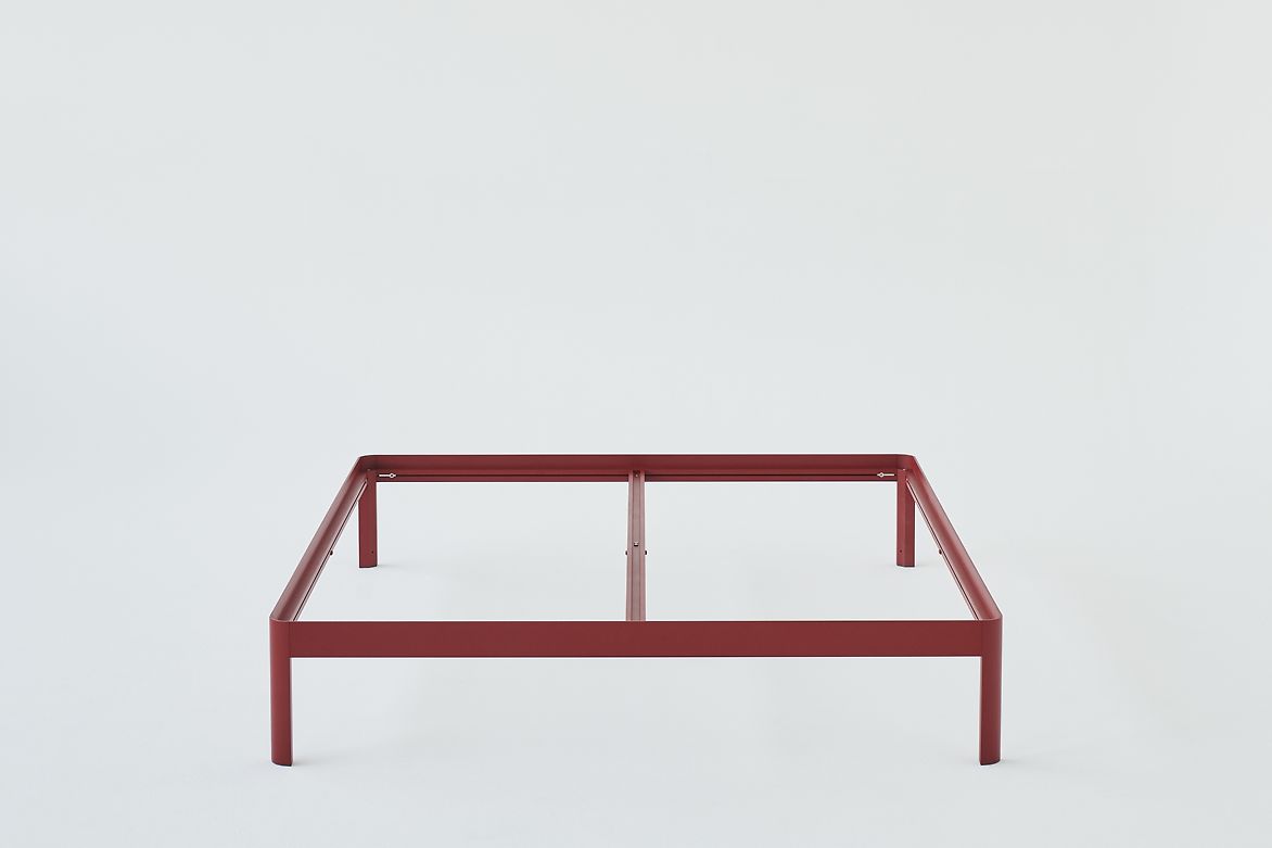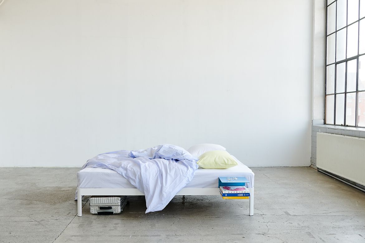 The frame is made in Denmark from extruded aluminium with a minimum of 75% post consumer recycled content. The aesthetic of the bed is unapologetically contemporary, and somewhat minimal, driven in part by a desire to stay true to its manufacturing processes and to create a visibly legible and intuitive product. The raw finish that appears brushed, for example, is actually achieved by reducing the post processing of the extrusions, thus highlighting the marks of manufacturing and elevating them to a premium finish.
