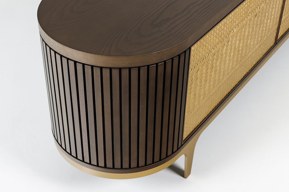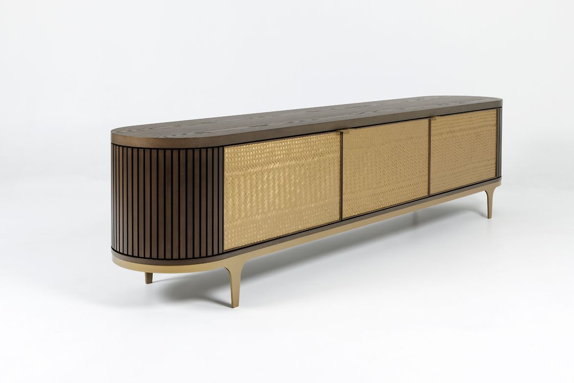 The design intention of the Weave credenza was to tell a unique Aotearoa New Zealand story by creating an opportunity to play with texture, materials and celebrate the traditional skills of Māori raranga weaving, cabinet making and metal work.