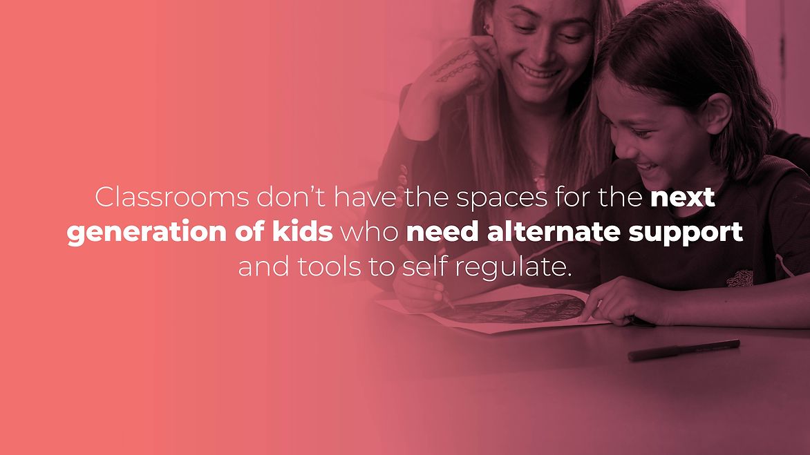 The data also shows that removing dysregulated children from the classroom negatively impacts their social and learning development, as well as their peers' ability to build empathy. In addition, large open plan learning spaces (much like offices for adults) fail to provide students with the control to create a personal user experience needed to learn and thrive.