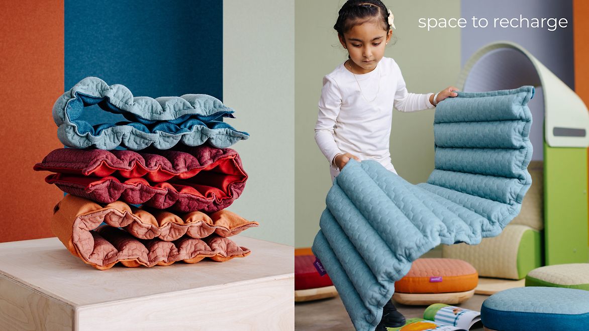 Each product brings something different to the family. The Hideaway Hood provides a solo sanctuary to escape the chaos. The Learning Hut creates a collaborative space to gather with your friends without feeling disconnected. The Laylow Raft and Pad provide low floor cushioning with multi-textured fabrics when you want to feel grounded. The Wobble Seat and Rocking Perch draw on deep research into the benefit of dynamic movement and provide the perfect outlet for active bouncy kids needing to stim and move while still being present and staying on task.